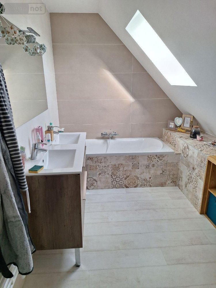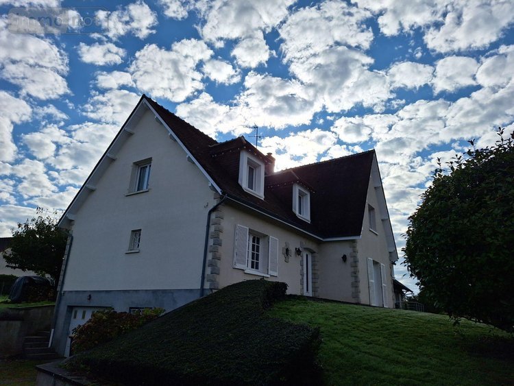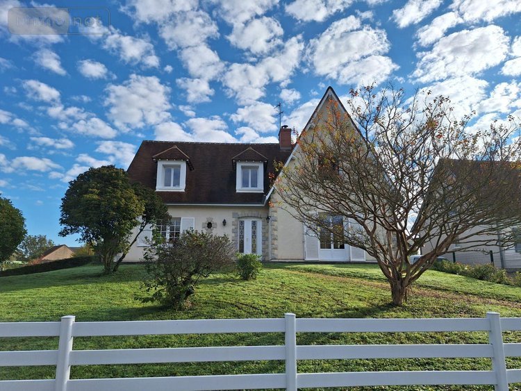 Maison à vendre à SAINT MARTIN D'AUXIGNY (Cher), grande maison familiale des années 80 comprenant au rez-de-chaussée une entrée avec un placard, un séjour-salon avec une cheminée, une cuisine aménagée et équipée, deux chambres, une salle de bain et un wc. A l'étage (rénovation récente) une pièce palière desservant trois chambres avec rangements, une salle de bain avec un meuble vasque et un wc. Au sous-sol (non isolé), un garage (12.90mètres de long), une buanderie, une cave et un débarras donnant sous la terrasse. Terrain clos et arboré de 1273 m²avec terrasse en pierre et une petite dépendance à usage de remise.
