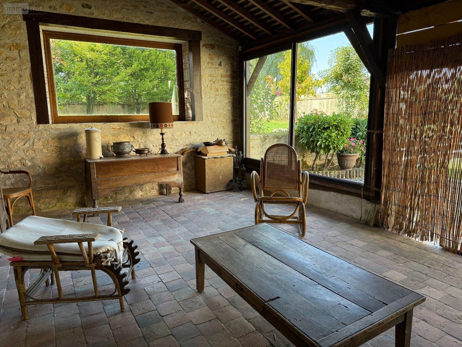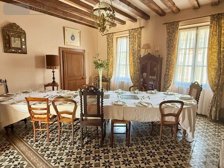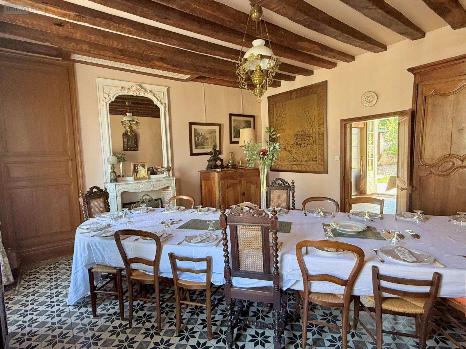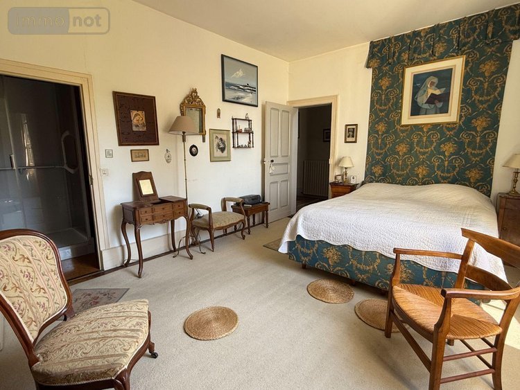 Maison de maître comprenant, au rez-de-chaussée, entrée, salon, salle à manger, cuisine. Au 1er étage, palier, trois chambres, dont une avec salle de douche, salle de douche avec water-closets, cabinet de toilettes. Au 2ème étage, palier, quatre chambres, salle de bains avec water-closets. Grenier. Porche, ancienne écurie, garage, cellier, salle à manger d'été avec cheminée, dépendance en pierre, terrasse en pierre, puit. Chauffage fuel.