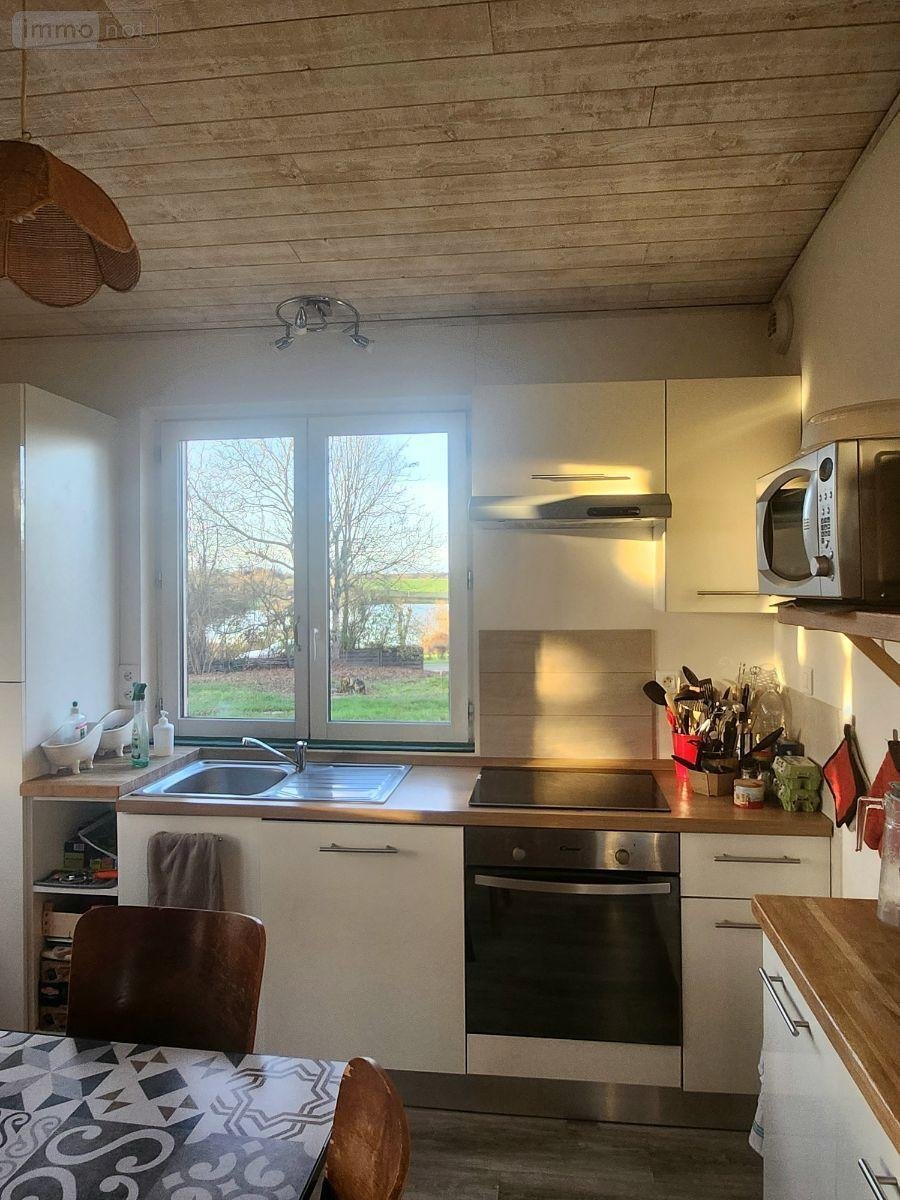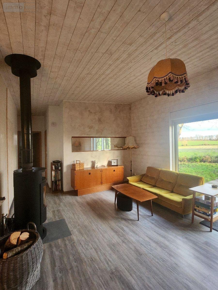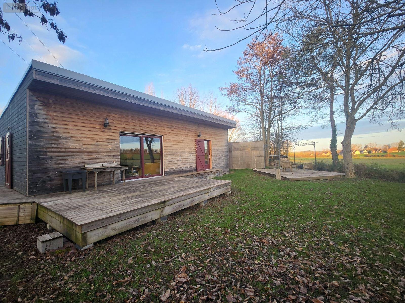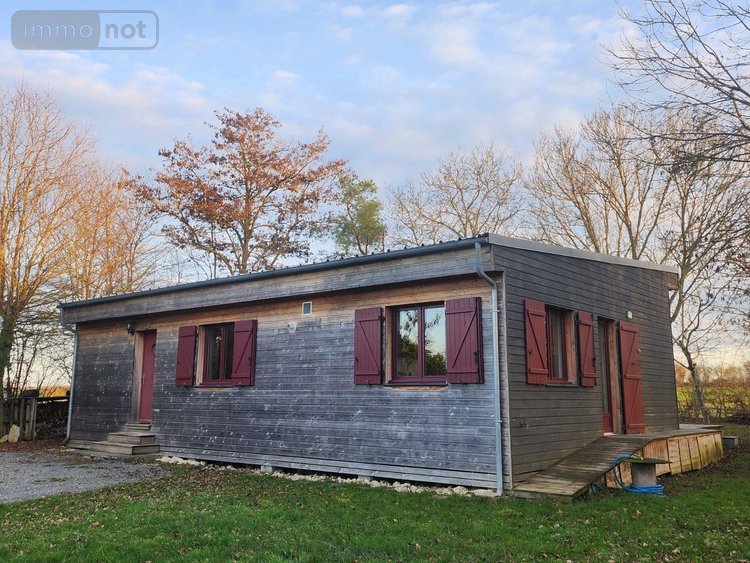 Cette maison en structure bois de 81 m² habitable est située sur un terrain de 1182 m². Elle dispose de 3 pièces, comprenant entrée, cuisine/séjour-salon, couloir, 2 chambres, salle de bains, buanderie. Garage non attenant. Caravane.