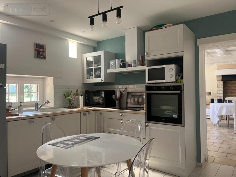 Maison à vendre à OSMOY (18 cher), située dans un environnement campagnard à 10min de Bourges, Longère Berrichonne rénovée (environ 160m² habitable), comprenant au rez-de-chaussée: Entrée, séjour avec polyflam, cuisine aménagée et équipée ( lave vaisselle, four, plaque, hotte), une chambre, salle de bains, pièce palière à usage de bureau, wc. A l'étage: Pièce palière, trois chambres, cabinet de toilette. Dépendance Garage double Jardin clos et arboré Chauffage: électrique + polyflam Huisserie: PVC/Double vitrage sauf 4 portes fenêtres en simple vitrage Assainissement: individuel Taxe Foncière: 624€ en 2024