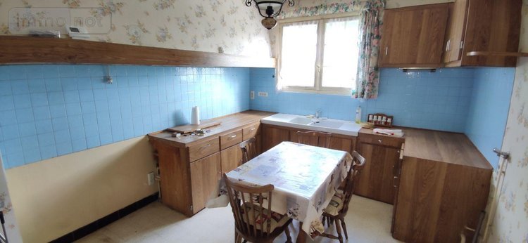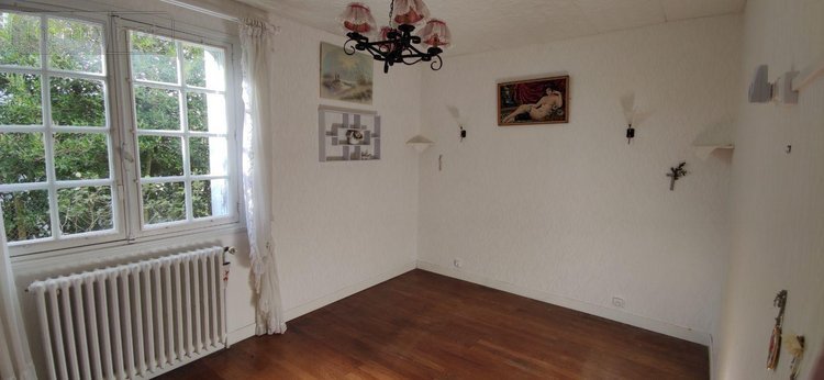 Un pavillon sur sous-sol comprenant une véranda, entrée, garage, atelier, cave, chaufferie. A l'étage un couloir desservant une cuisine, séjour avec cheminée et balcon, quatre chambres, salle d'eau et wc. Grenier aménageable.