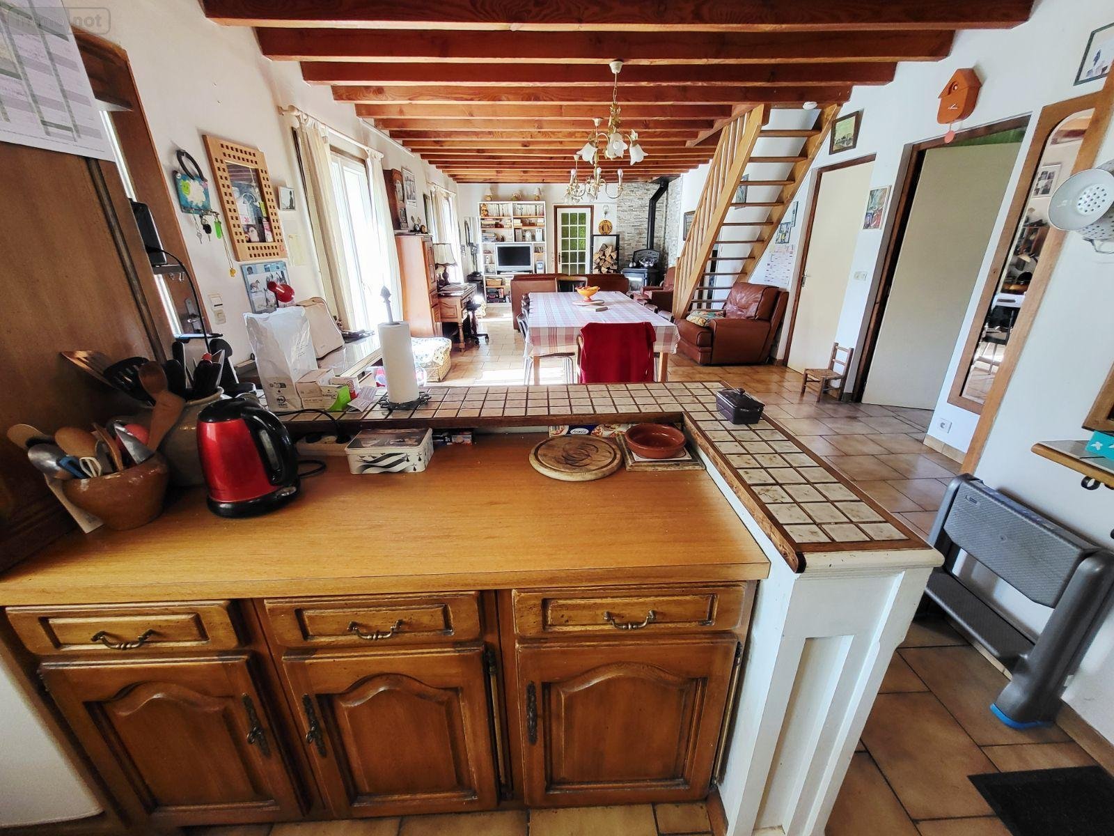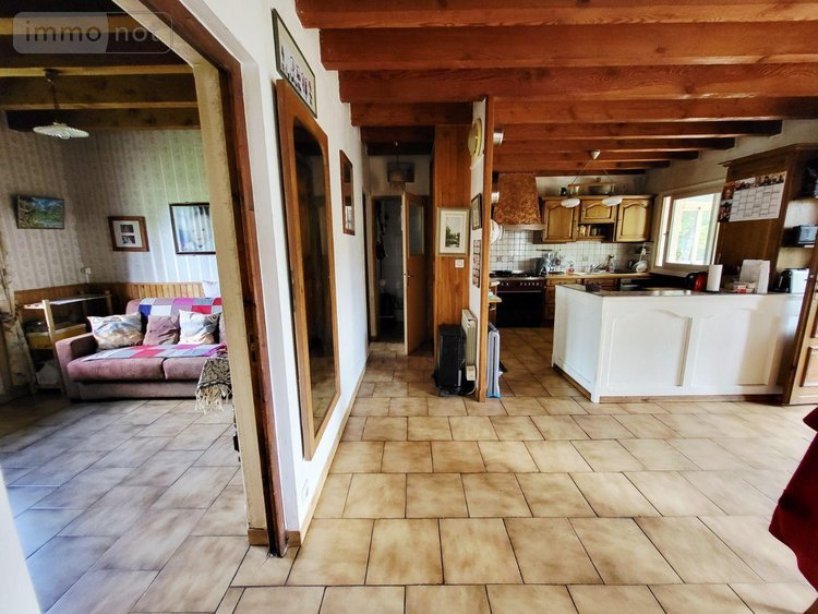 Ce bien, proposant une superficie habitable de plain-pied, dispose en rez-de-chaussée d'une agréable véranda, d'une cuisine ouverte sur pièce à vivre avec poêle à bois, de trois chambres, d'une salle de bains et de WC. L'étage comprend une pièce palière, deux dortoirs et des WC.