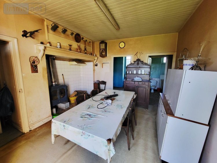 - une maison à usage d'habitation, mitoyenne par la gauche composée en rez-de-chaussée d'une pièce à vivre avec coin cuisine, d'une pièce à usage de chambre, d'une salle à manger, d'une salle d'eau avec WC et d'une deuxième chambre. L'étage, accessible par une seconde entrée, comprend trois chambres supplémentaires et une salle de bains avec WC,