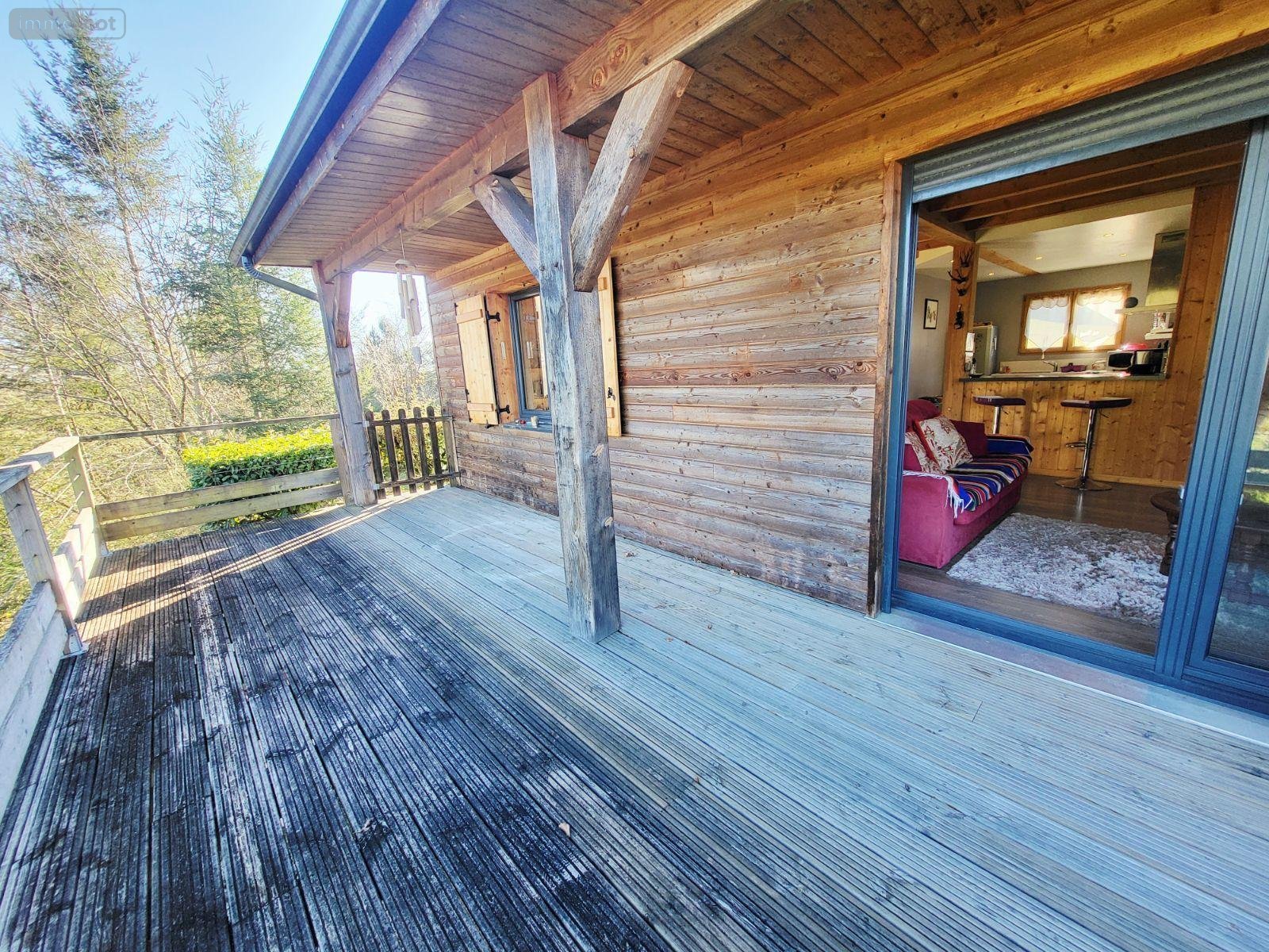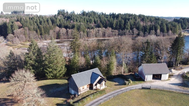 Charmante maison de type chalet des années 2010 à vendre à Ambrugeat en Corrèze, implantée sur un parcelle de 3255 m² et située à proximité du lac de Séchemailles.