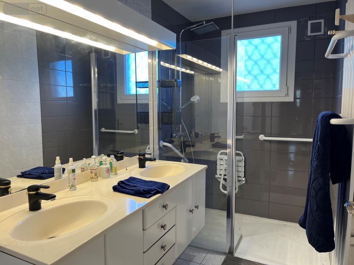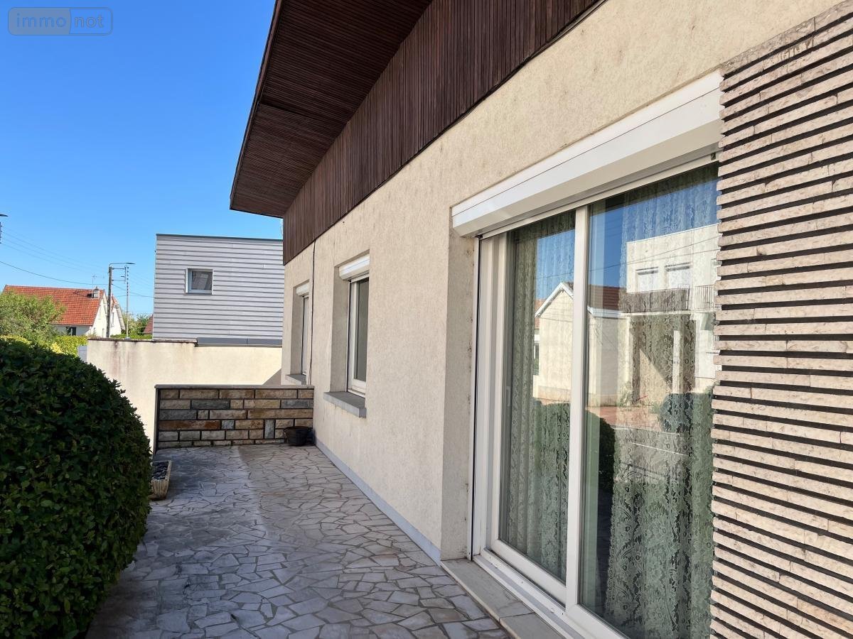 Dijon, Rue Ernest Petit, maison de type IV/V, d'une surface habitable de 116,88 m² comprenant en rez de chaussée surélevé : cuisine aménagée et équipée, séjour salon avec insert de 30,40 m2; 2 grandes chambres, salle d'eau avec meuble double vasque, wc; grande chambre indépendante avec salle d'eau wc accès sur la cour arrière de 25,70 m2; sous-sol complet avec grand garage-atelier, buanderie, pièce d'appoint, cave, pompe à chaleur air/eau, le tout sur un terrain total de 360 m². Prix : 280 000 Euro HNI.