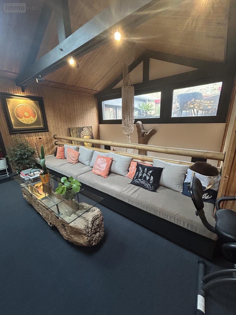 Derrière la gare, cette maison-restaurant construite en pierre avec double couverture ardoise-zinc et se composant d'une entrée donnant dans un hall à la végétation verdoyante avec placard, donnant accès à trois parties différentes du lieu, à savoir: