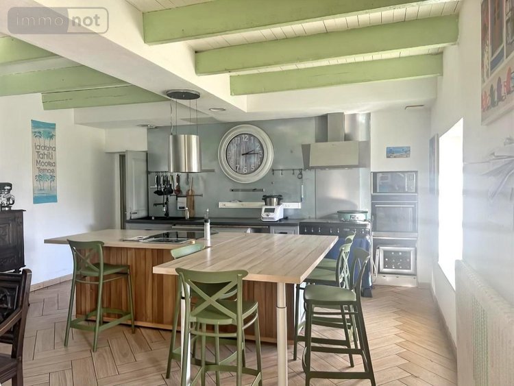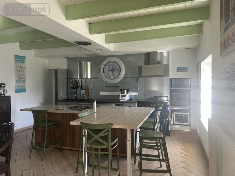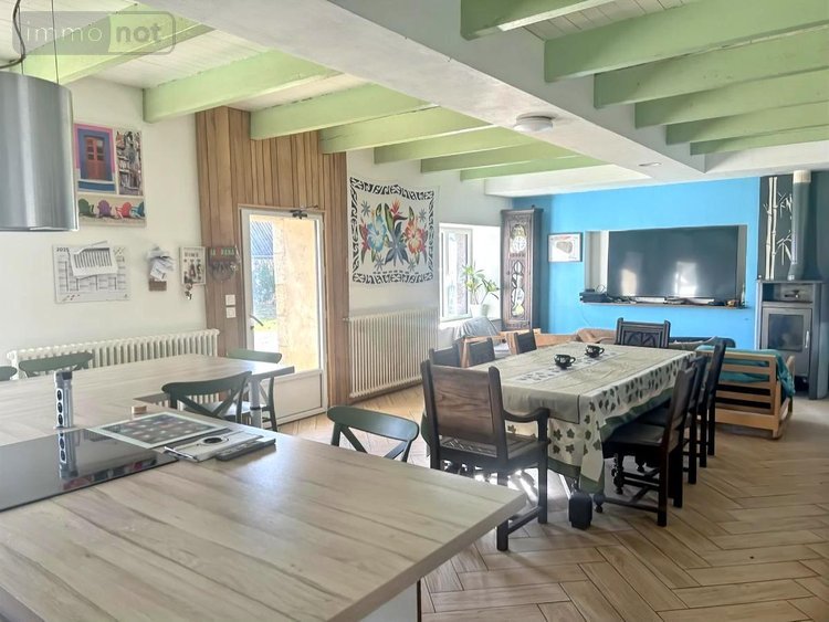 - Au rez-de-chaussée : cuisine amenagée ouverte sur séjour avec poêle à bois, quatre chambres, cellier/chaufferie, salle de douches, WC