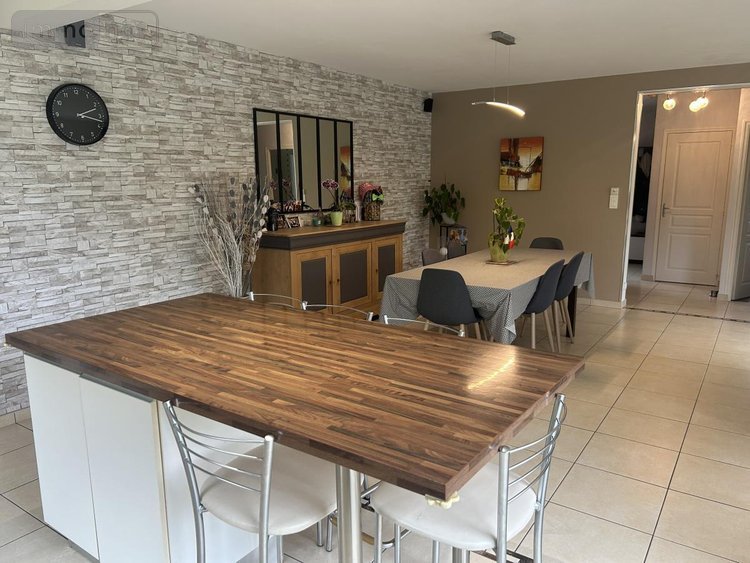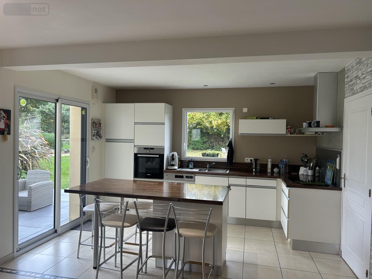 - Au rez-de-chaussée : entrée, cuisine aménagée et équipée ouverte sur séjour/salon, buanderie, chambre avec placards, grande pièce avec placards, salle de douches, WC
