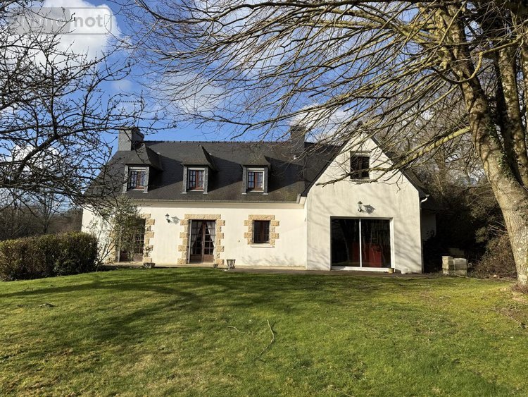 Sur plus de 4000 m2 de terrain, en campagne et à moins de dix minutes du centre-ville de Guingamp et cinq minutes des grands axes, maison en parpaings sous ardoises comprenant :