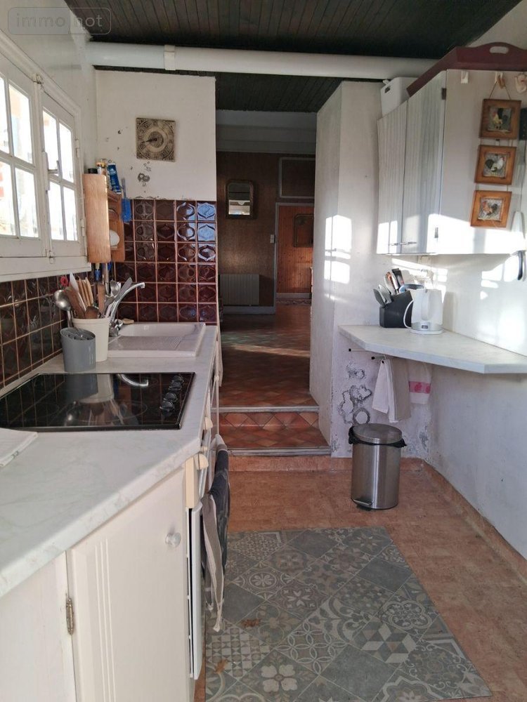 Maison d'habitation comprenant au rez-de-chaussée : véranda, séjour, cuisine, arrière-cuisine, wc, salle d'eau, chambre. A l'étage, un palier desservant deux chambres. Garage avec pièce au dessus, atelier, bucher, cabanon en bois.