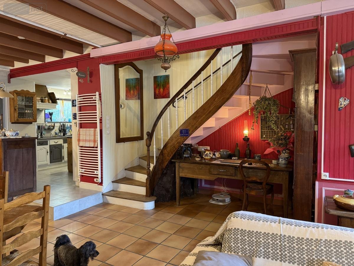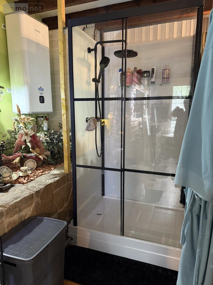Maison de caractère, indépendante en pierres sous ardoises, comprenant une entrée desservant une belle pièce comprenant espace cuisine meublée et équipée ouverte sur salle et salon avec une cheminée et pôle à bois, wc. De part et d'autre de cet espace de vie, une grande salle d'eau et wc, de l'autre vaste cellier/atelier/buanderie.