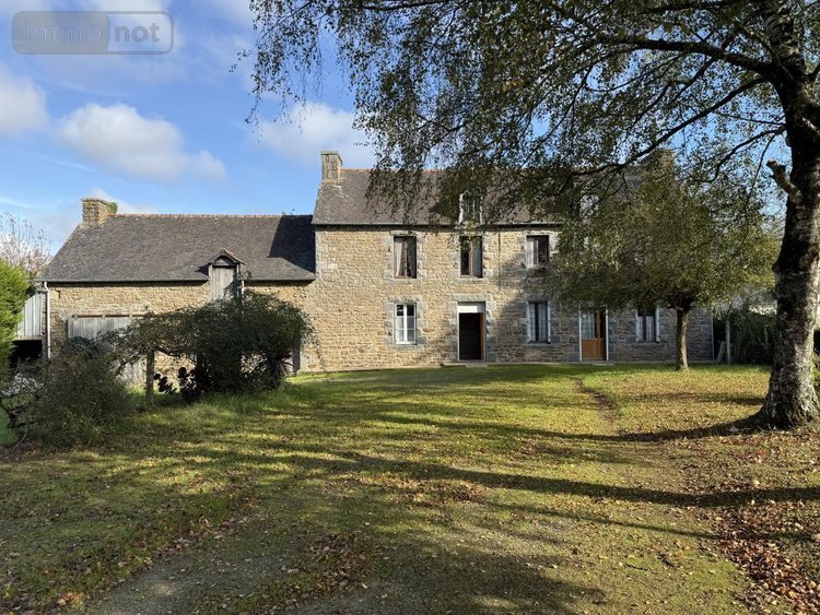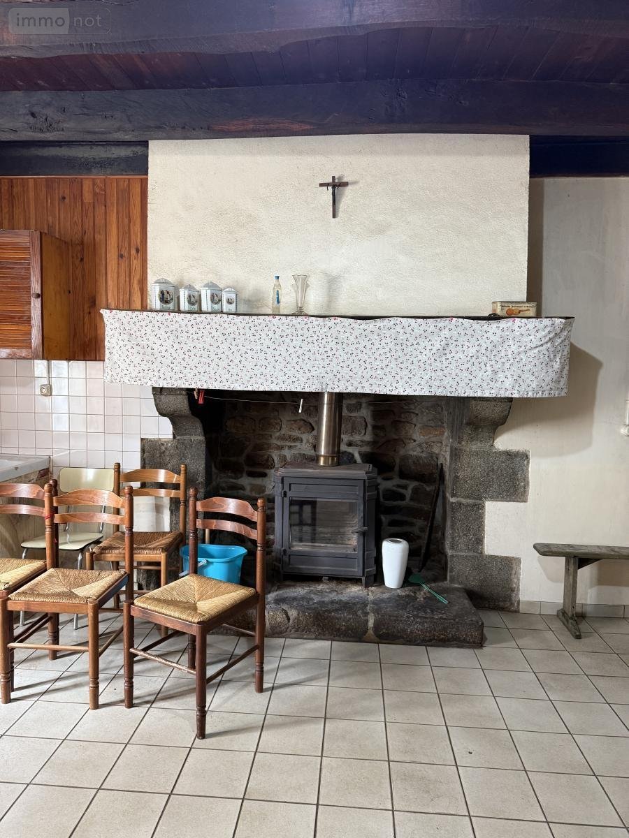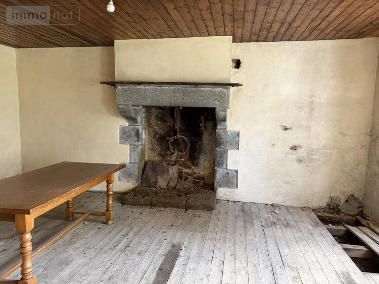 Longère en pierres sous ardoises comprenant au rez-de-chaussée une entrée, une cuisine avec cheminée (poêle à bois), une grande pièce (séjour) avec cheminée, une chambre sur parquet, une salle d'eau, wc, cellier sur l'arrière. Au 1er étage sur parquet : 4 chambres. 2ème étage : Grenier isolé sur la totalité.