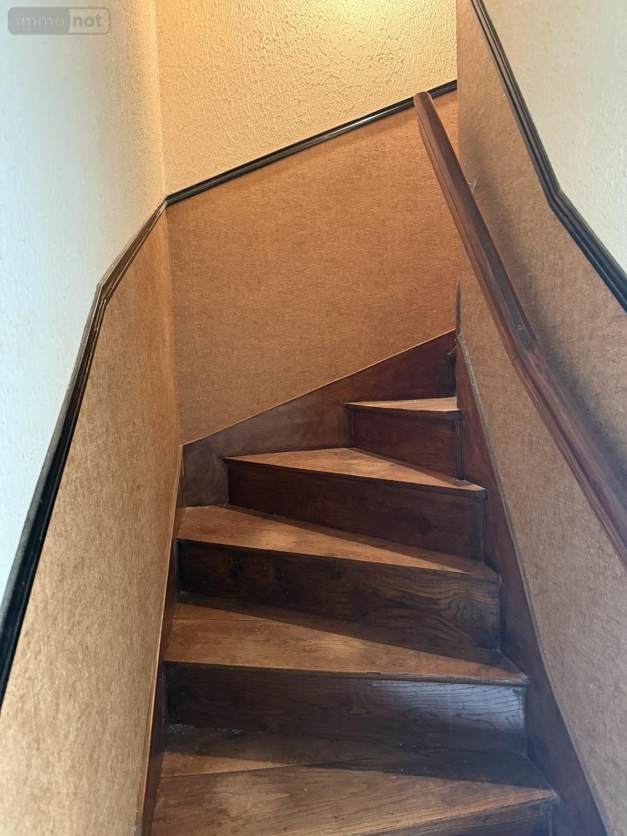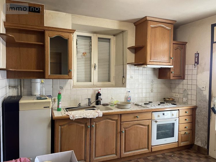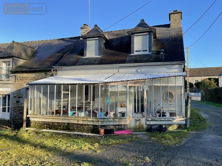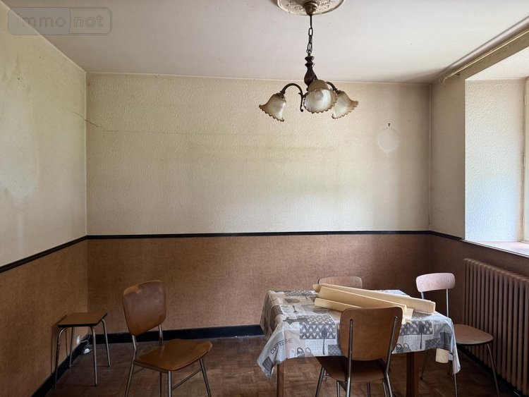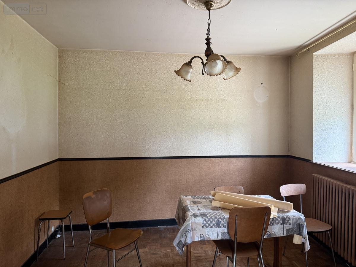 Maison mitoyenne d'un côté, en pierres sous ardoises, comprenant véranda, cuisine partiellement meublée/équipée, salle à manger cheminée, salon, wc ; étage sur dalle de deux chambres, salle de bains. Jardin devant et derrière pour 262 m2. Autre jardin juste à côté de 172 m2. Garage indépendant et en appentis bâtisse en pierres à usage de débarras.