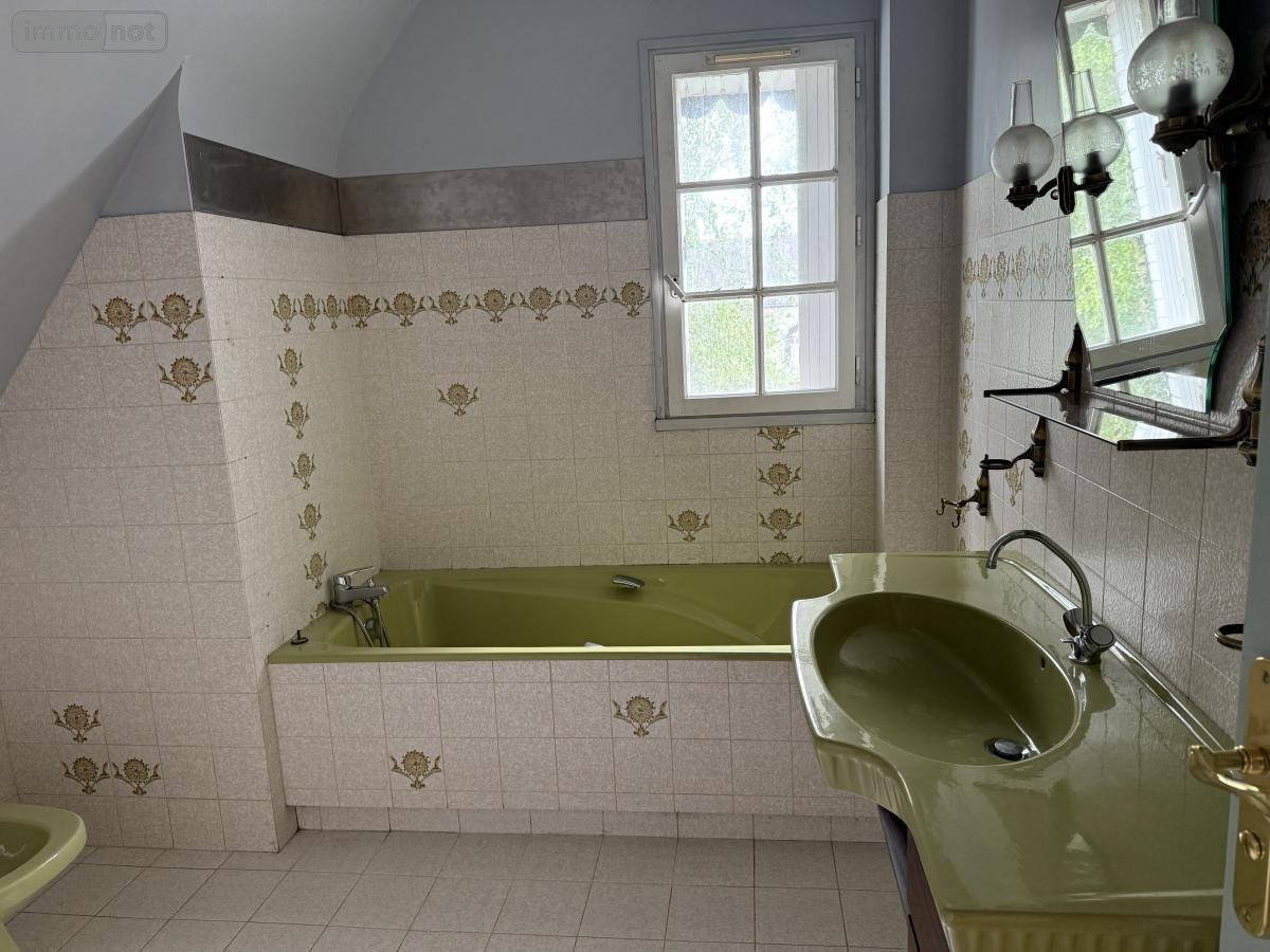 Belle maison de bourg, indépendante avec un jardin clos de 234 m2, comprenant en rez de chaussée, grande entrée placards, deux belles pièces dont une à usage de chaufferie et buanderie, grande véranda sur jardin, cellier, douche et wc, débarras ; au premier étage, palier desservant cuisine meublée équipée d'époque, salle et salon cheminée et balcon, wc lave mains, une chambre ; étage de trois chambres, salle de bains, wc.