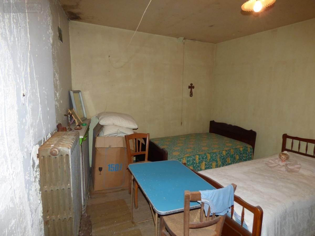 Maison d'habitation mitoyenne d'un côté, construite en pierres, comprenant au rez-de-chaussée entrée (couloir commun avec la maison mitoyenne), dégagement, salle de bains avec WC, cuisine, 1 chambre. Sur l'arrière autre construction, WC, chambre. A l'étage, 2 pièces et grenier. Courette devant. En face et de l'autre côté de la route, bâtiment à usage de débarras et jardin de 418 m2.