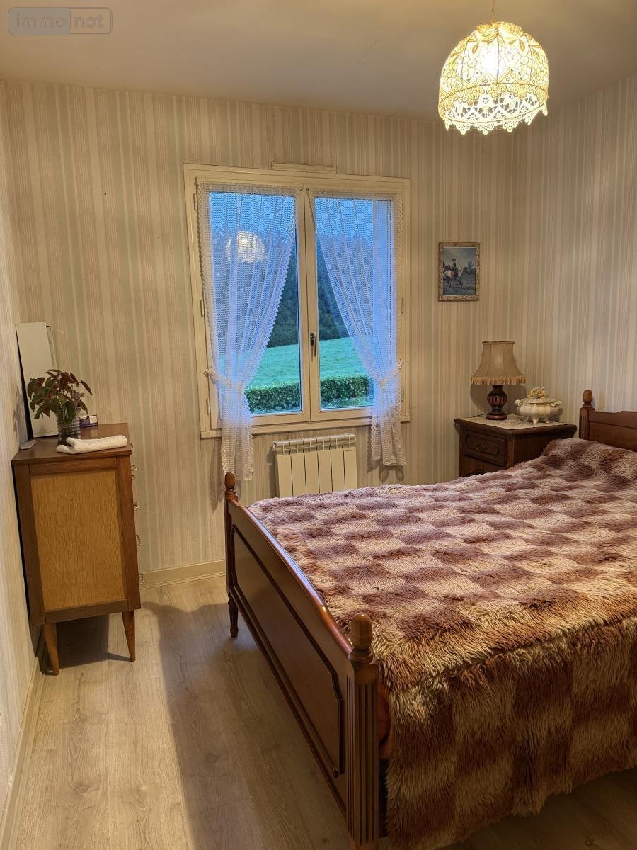 Sur parcelle de 9620 m2, pavillon indépendant construit en 1983, élevé sur sous-sol intégral (buanderie, pièce débarras, garage) et comprenant en rez de chaussée surélevé une véranda alu double vitrage, une cuisine d'époque meublée et équipée, salle et salon poêle à bois, placards, deux chambres, salle d'eau douche italienne, wc ; grenier au-dessus. Bâtisse en pierres à rénover, indépendante, sur 480 m2 de jardin.