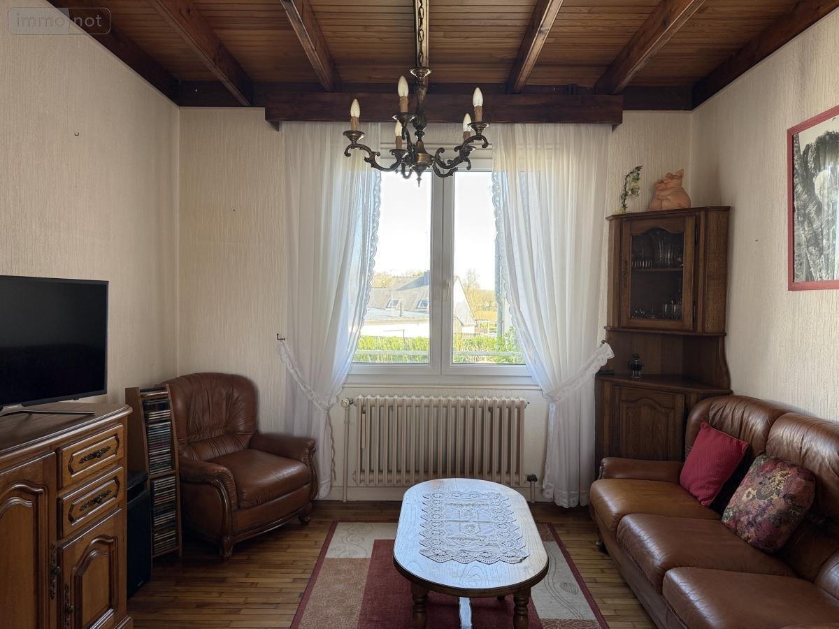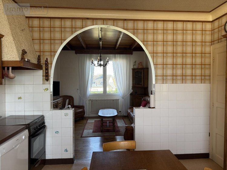 Maison en parpaings sous ardoises comprenant au rez-de-chaussée surélevé : une entrée, une cuisine équipée ouverte sur un salon et une salle à manger / salon, WC séparé.