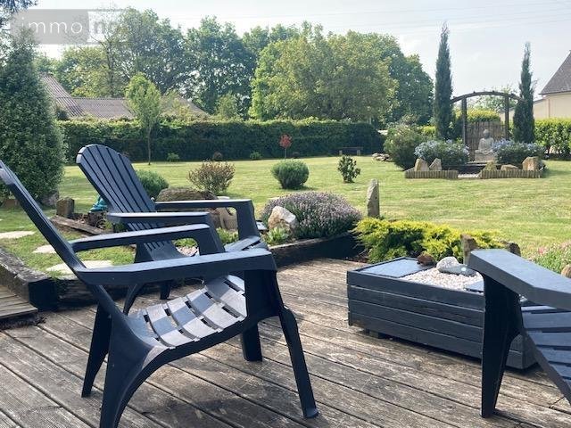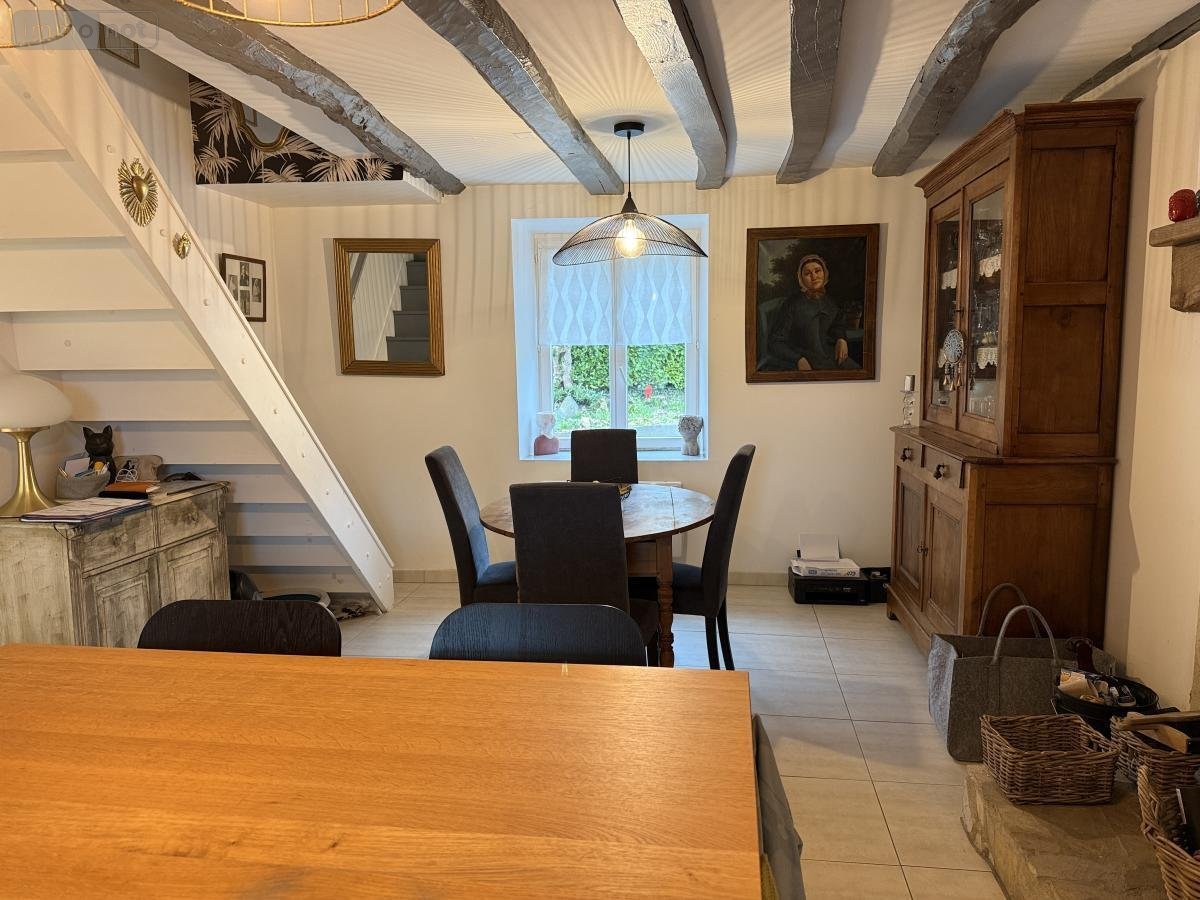 Sur terrain de 1200 m2, jolie maison en pierres, mitoyenne d'un côté, entièrement rénovée et comprenant en rez de chaussée une entrée, une cuisine équipée ouverte sur une salle à manger avec cheminée et poêle à bois, un salon, une salle de bains et wc ; étage de trois chambres et une petite pièce. Garage et débarras. Dépendance. Puits.