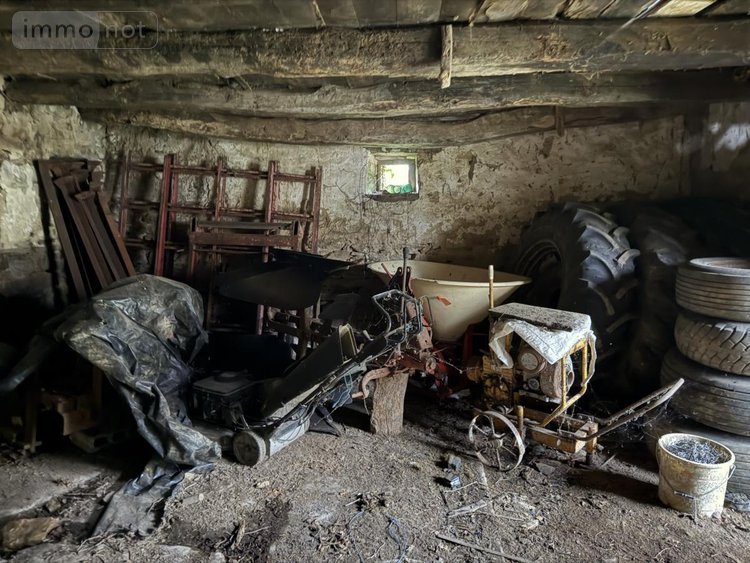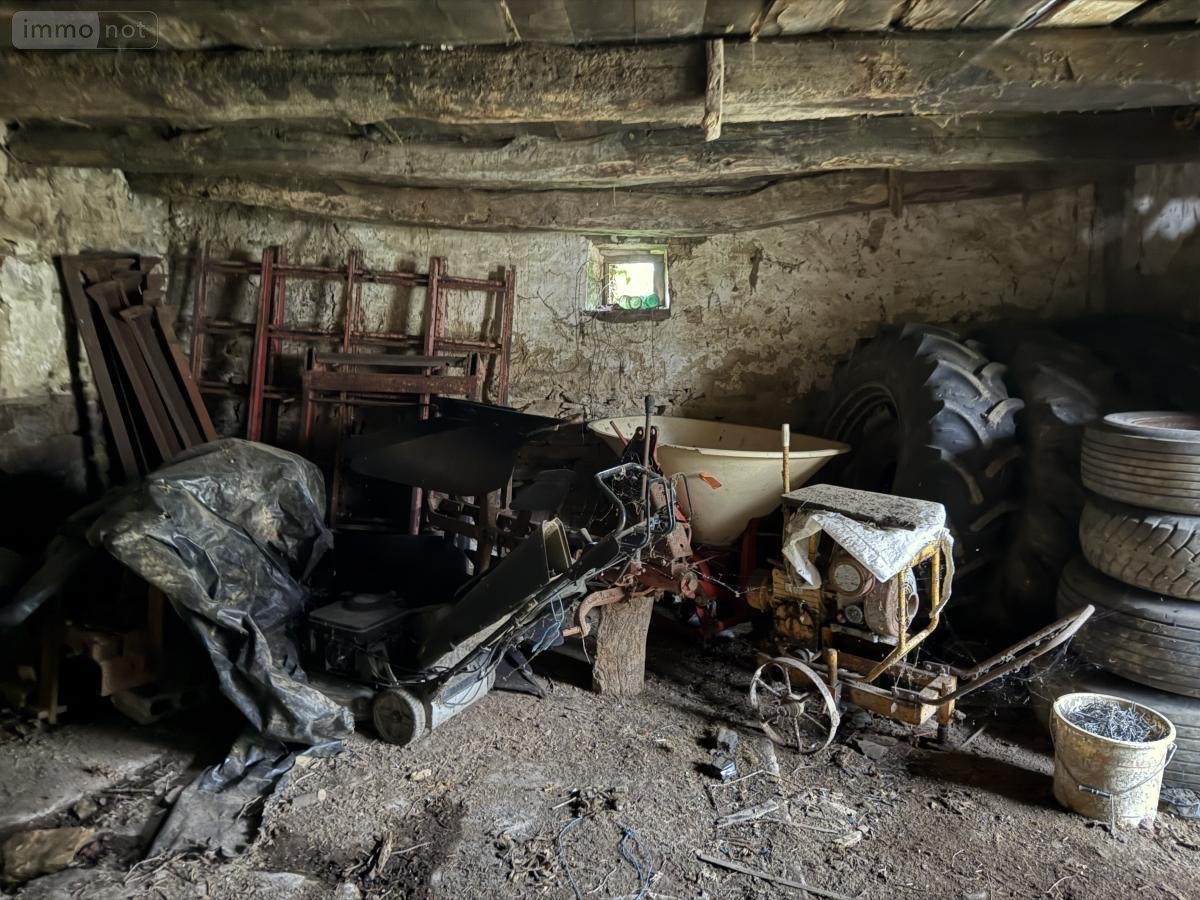 Bâtisse en pierres sous ardoises naturelles, indépendante, sur terrain de 480 m2 comprenant une pièce cheminée et grenier au-dessus, grange et appentis.