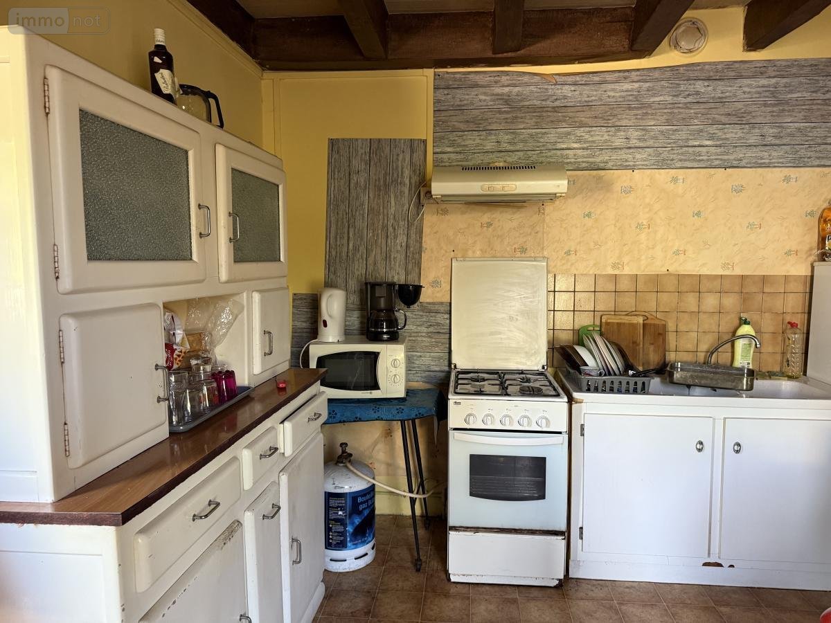 Maison en pierres, indépendante, sur terrain à délimiter par géomètre pour environ 750 m2, comprenant deux logements (qui pourraient être réunis en un seul). Le premier se compose d'une cuisine, salon, wc, salle d'eau ; étage de deux chambres. Buanderie/cellier. Garage indépendant. Le second est composé d'une cuisine, salle/salon, salle d'eau, wc ; étage de deux chambres. Garage à l'arrière. Grenier sur l'ensemble.