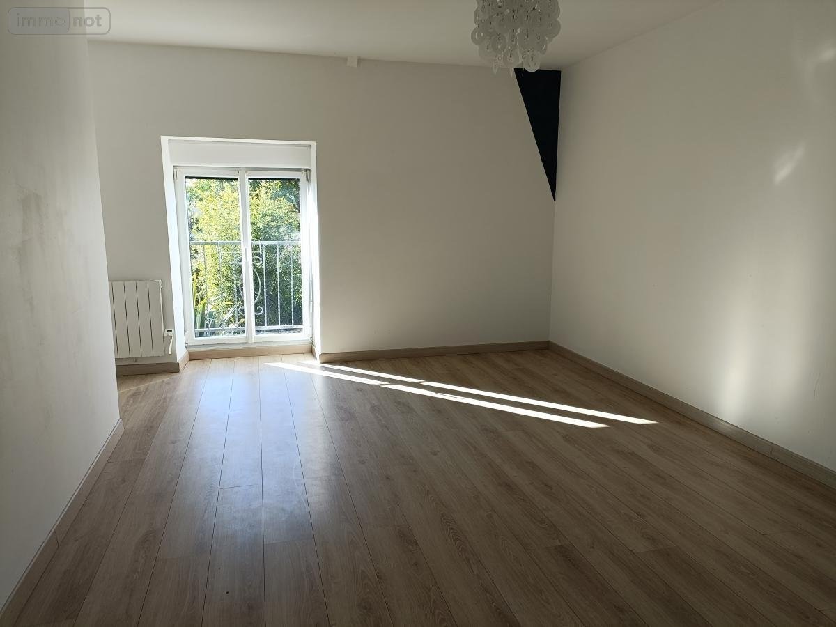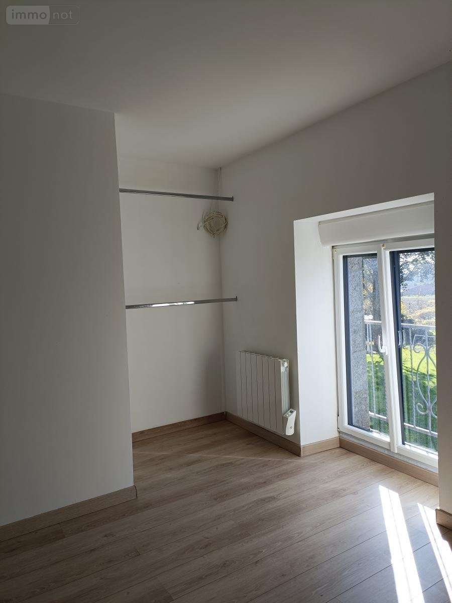 Maison mitoyenne d'un côté, composée au rez-de-chaussée : d'une entrée, une pièce de vie (avec poêle à bois) avec cuisine aménagée et équipée en partie (plaques et hotte), un couloir, une salle d'eau, wc (séparé) et une grande pièce attenante à usage de rangement ou cellier. A l'étage un couloir dessert deux grandes chambres. Cour avec places de stationnement et jardin arboré devant la maison.