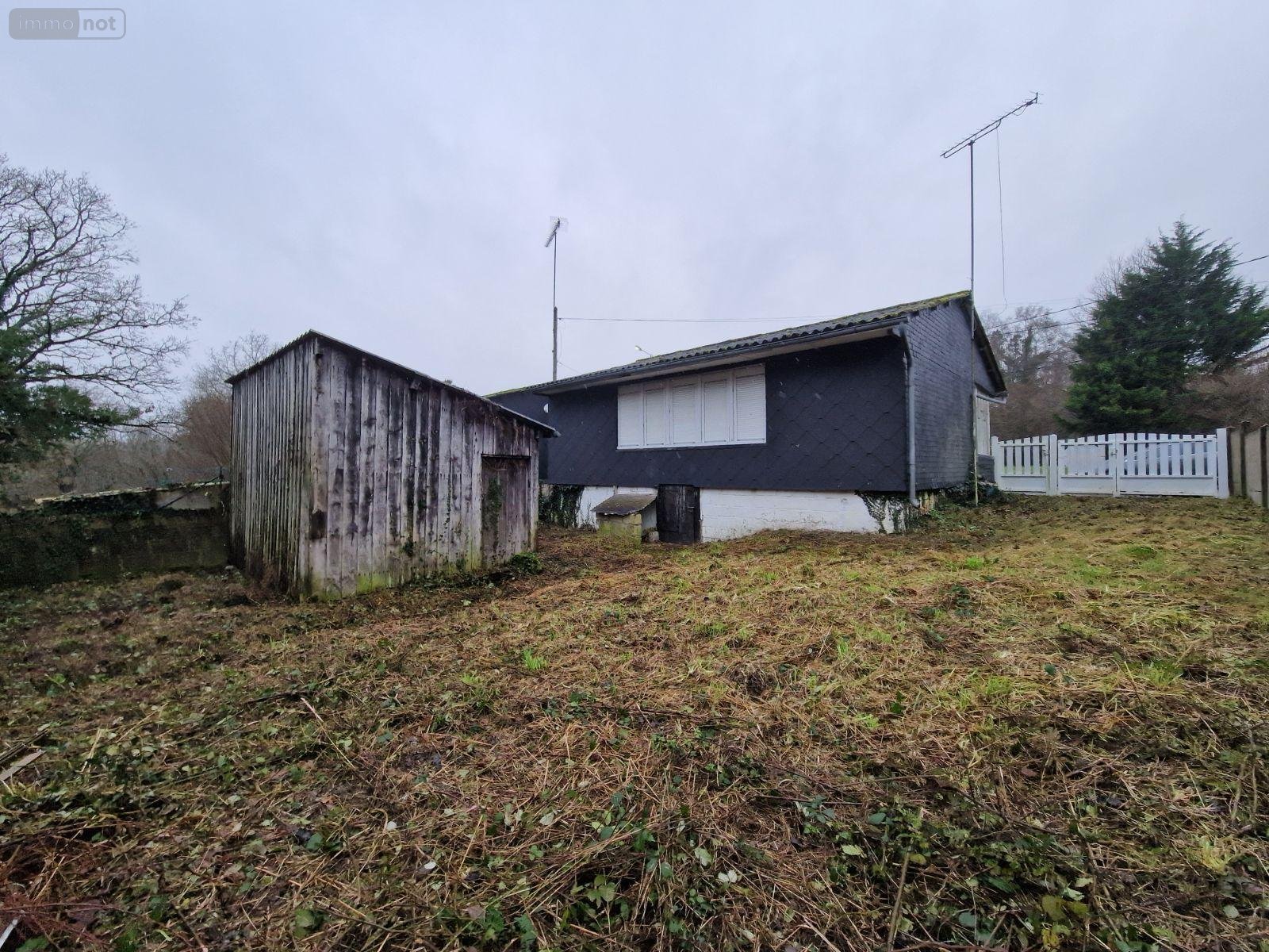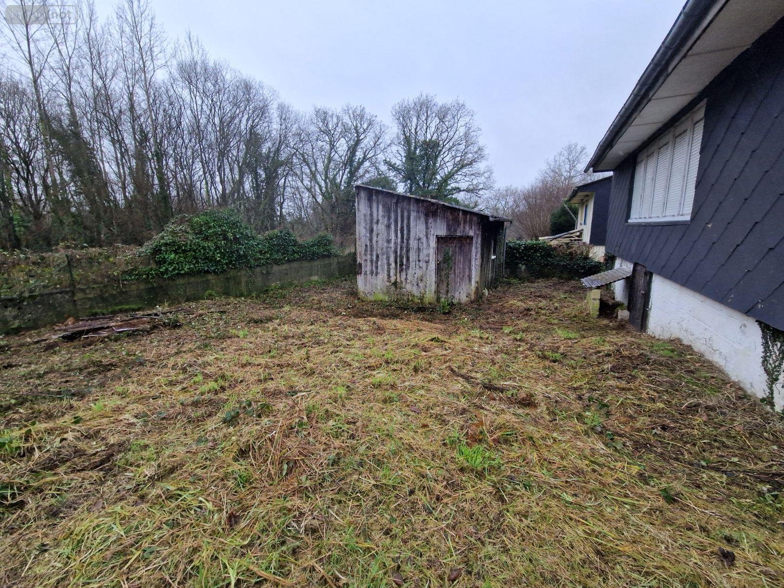 Hangar en ossature bois sous fibrociment ondulé. Jardin clos.