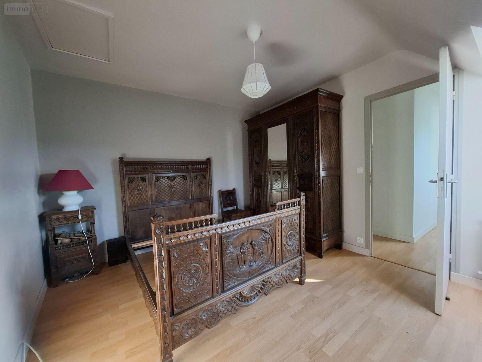 Étage par escalier en pierre : quatre chambres, une salle de bains avec WC, un grenier.