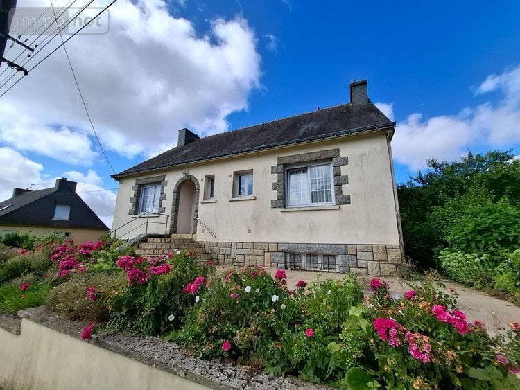 Une maison en maçonnerie avec soubassement en pierres couverte en ardoises, comprenant :