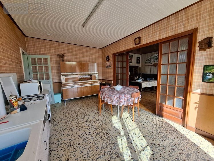 - Rez-de-chaussée : une entrée sur une cuisine avec cuisinière fioul ouverte sur un séjour/salle-à-manger avec cheminée, un dégagement, une chambre, une salle d'eau, une chaufferie, un WC, un cellier.