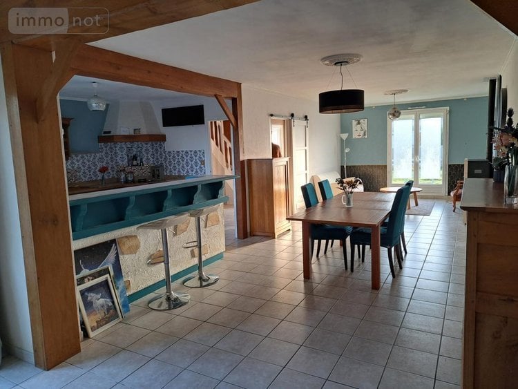 Au rez-de-chaussée : Une entrée, un WC, un bureau, une buanderie, une cuisine ouverte, un salon séjour, un couloir desservant un WC, une salle d'eau et une chambre.