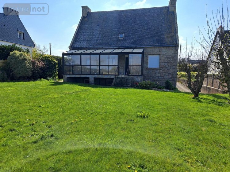 Maison d'habitation sur sous-sol en pierre sous ardoise d'Huelgoat ayant au rez de chaussée: hall d'entrée, couloir, cuisine aménagée équipée, véranda, salon séjour avec cheminée, chambre, placard, lingerie, WC et salle de bains. A l'étage : palier placard, 3 chambres, salle d'eau avec WC et grenier. Au sous-sol : garage, buanderie, coin atelier et réserve. Terrain clos et arboré autour