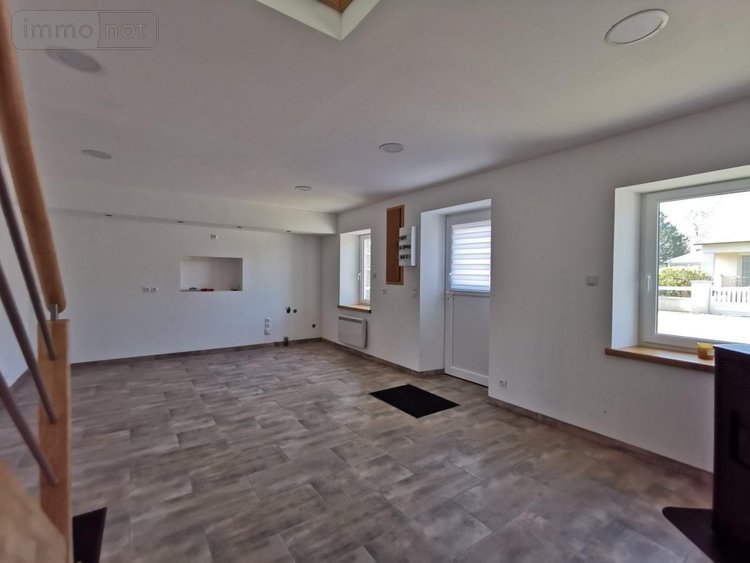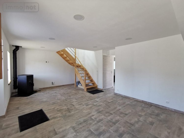 La maison se compose, au rez-de-chaussée, d'une pièce à vivre de 28m2 environ : salon, séjour avec poêle à granulés. Reste la cuisine à installer.