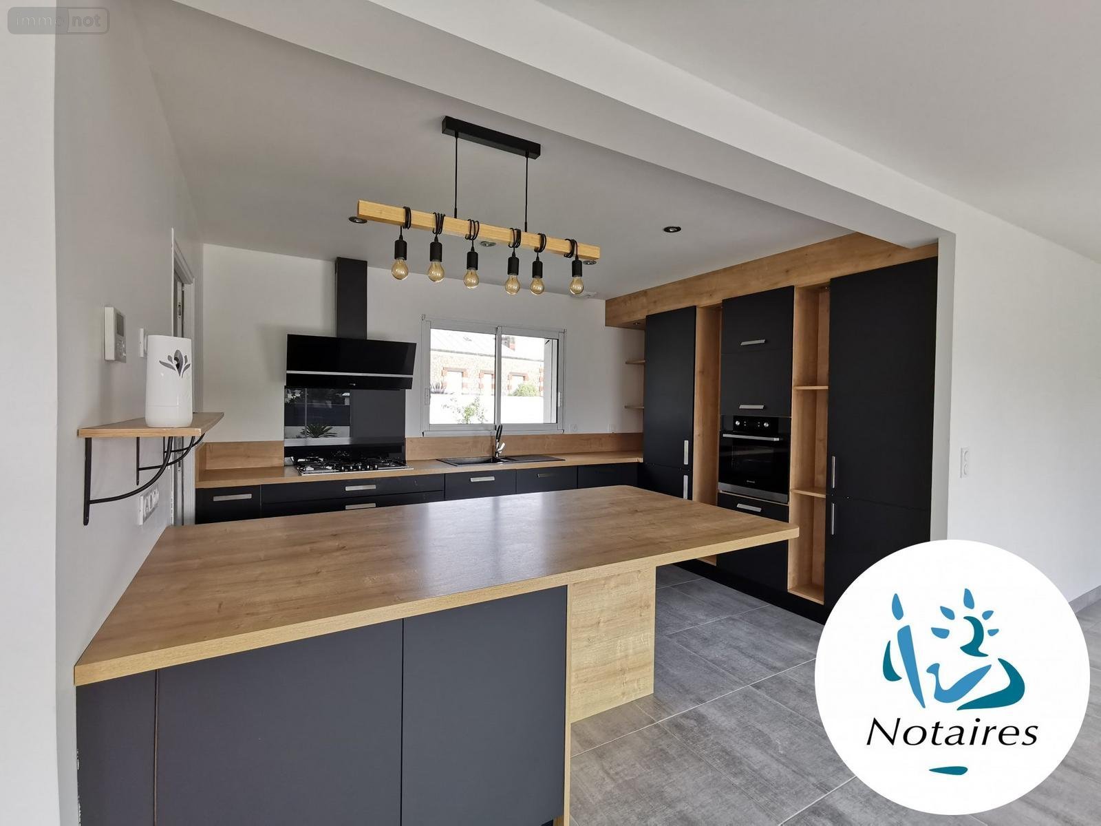 La cuisine donne accès au cellier buanderie, puis au garage de 21m2 avec grenier.