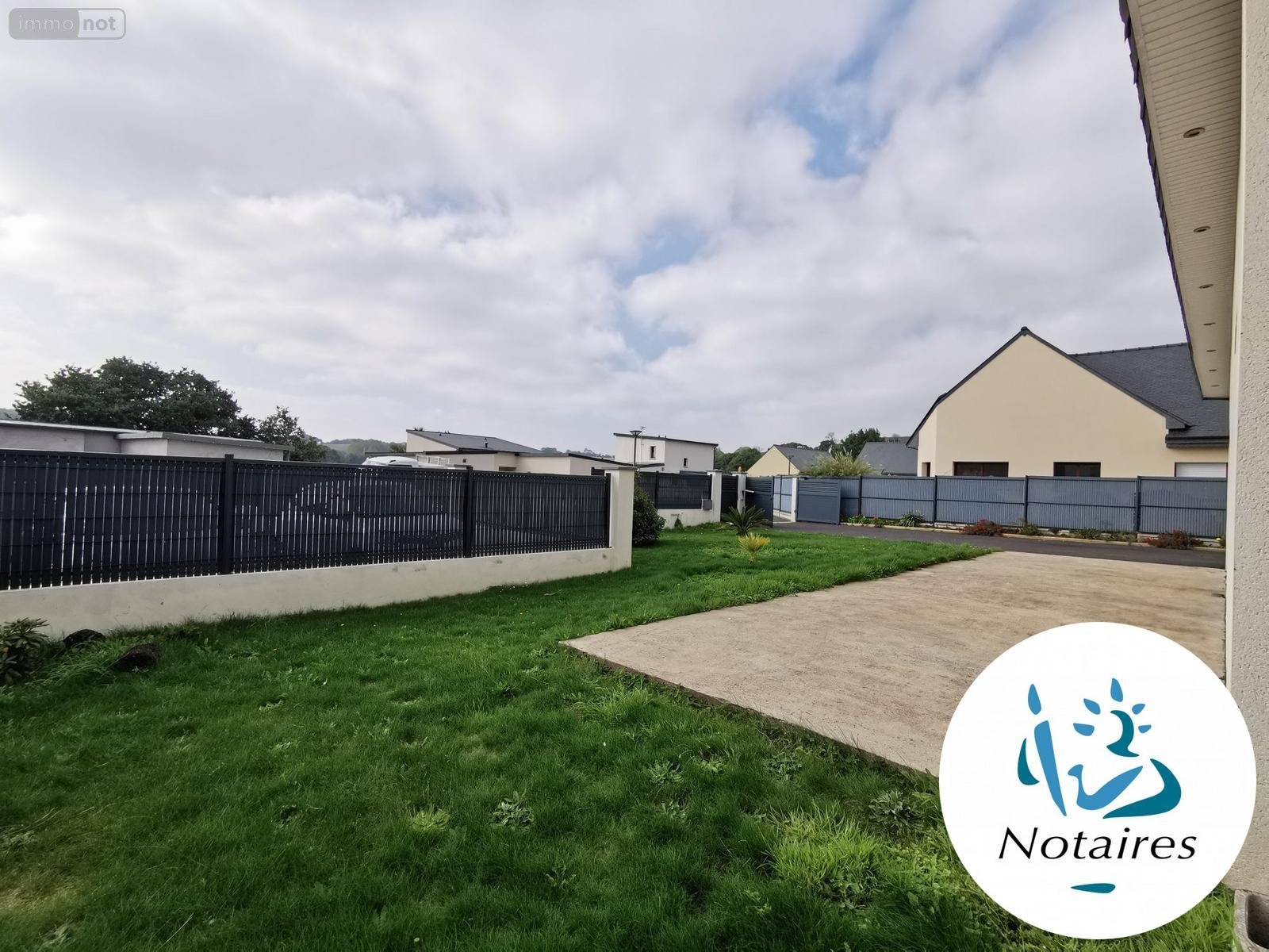 Le jardin entièrement clos de 614 m² offre une terrasse, un jardin et un parking bitumé.