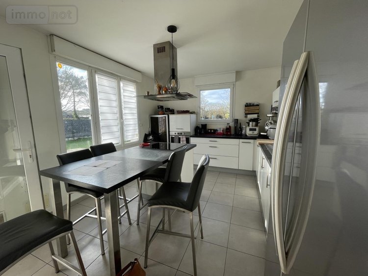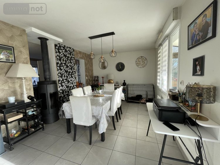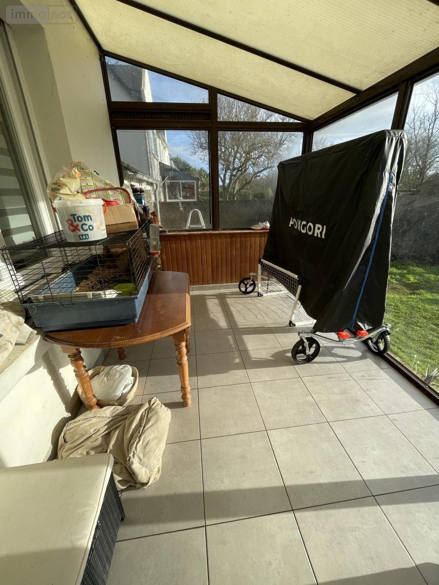 Rdc: véranda, séjour avec poêle à bois ouvert sur cuisine aménagée équipée, salle de bains (douche et baignoire), wc, salon.