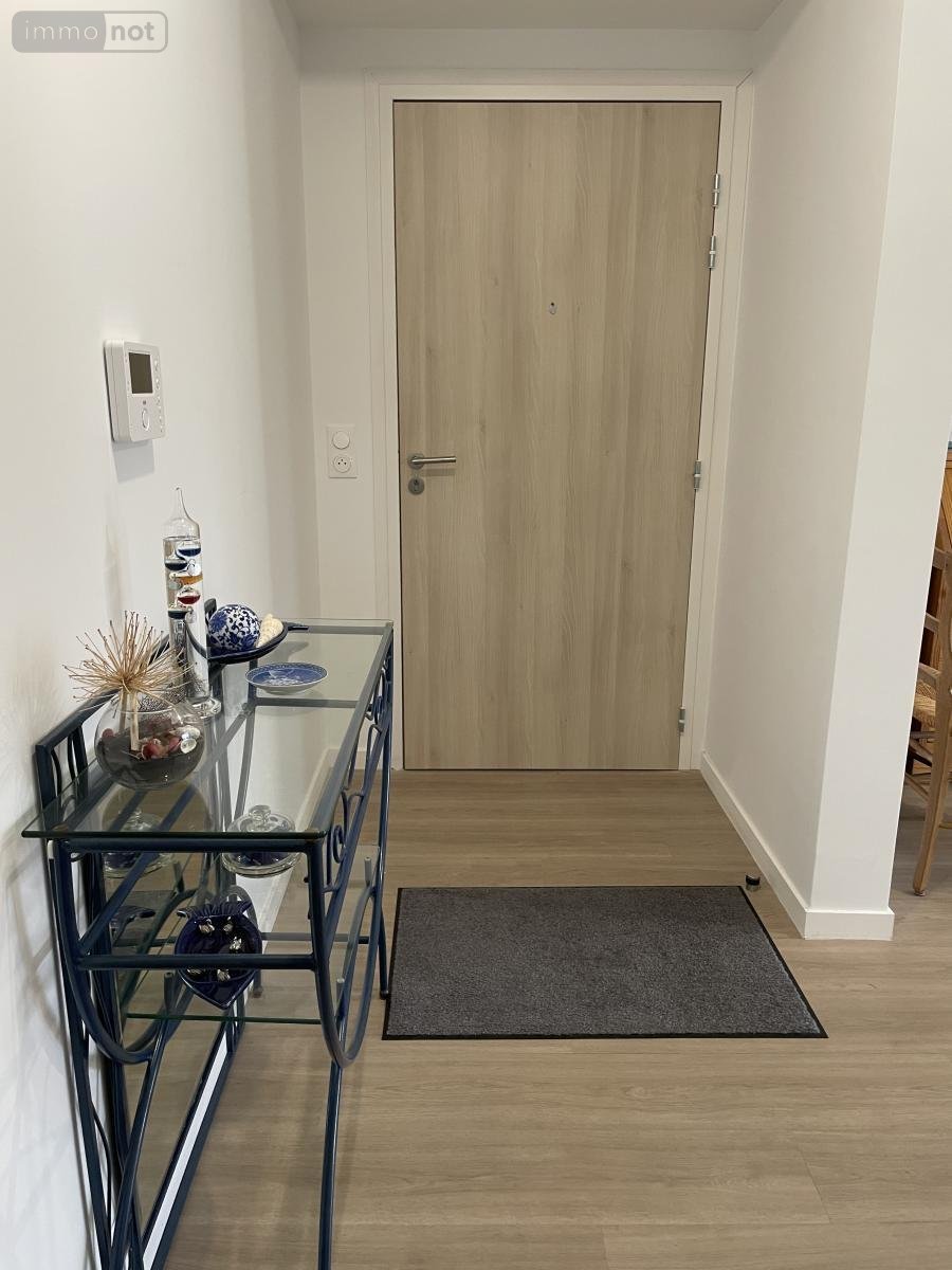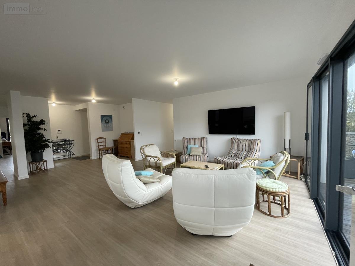 Entrée , vaste séjour-salon avec cuisine aménagée équipée et deux terrasses, arrière cuisine, salle de bains avec baignoire d'angle, salle d'eau avec wc, deux chambres, dégagement avec placard.