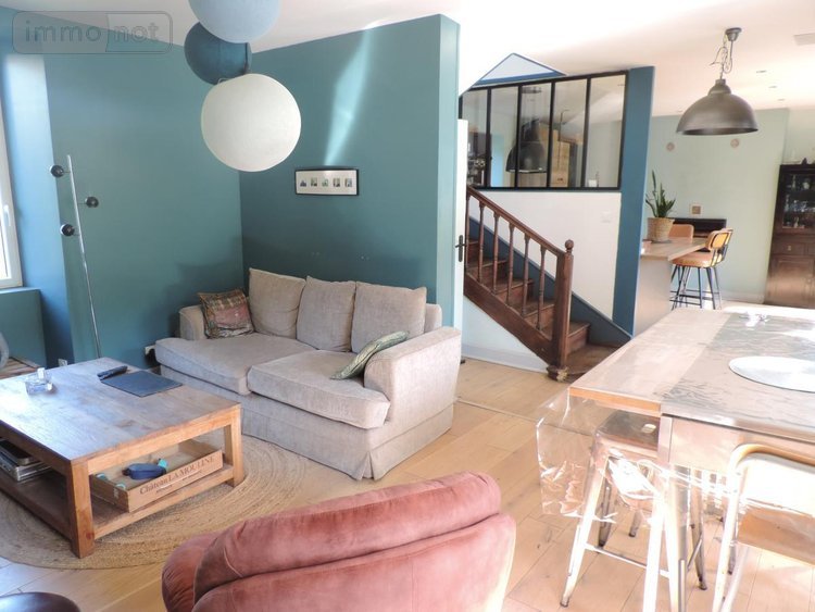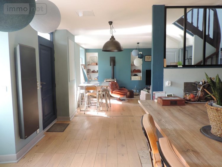 Maison de caractère comprenant au rez de chaussée, un séjour, une cuisine équipée ouverte (insert a bois). Au premier étage, un palier desservant deux chambres et une salle d'eau avec w.c.