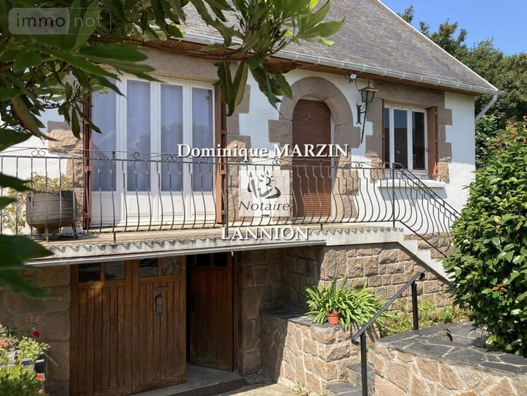 Maison d'habitation située à LANNION(22300), comprenant séjour avec cheminée, quatre chambres dont une en rez-de-chaussée surélevé, sous-sol complet avec garage, le tout sur 392 m² de terrain, proche toutes commodités.