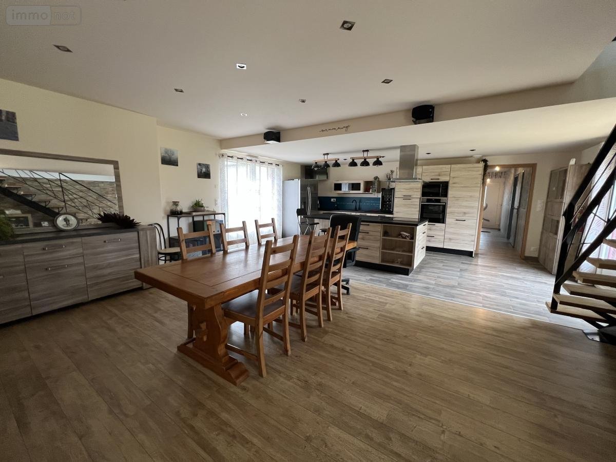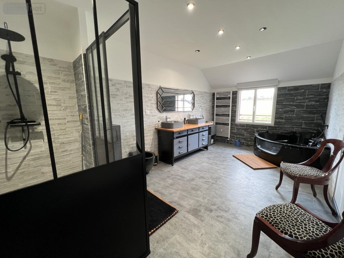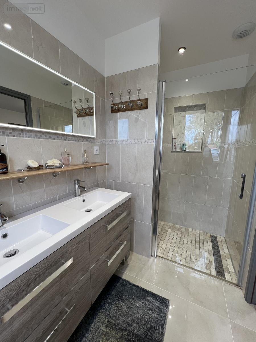 Au rez-de-chaussée : pièce de vie, séjour - salon avec cheminée insert bois - cuisine ouverte aménagée et équipée, une chambre, suite parentale comprenant chambre, salle d'eau et dressing, arrière-cuisine - buanderie donnant sur la terrasse.
