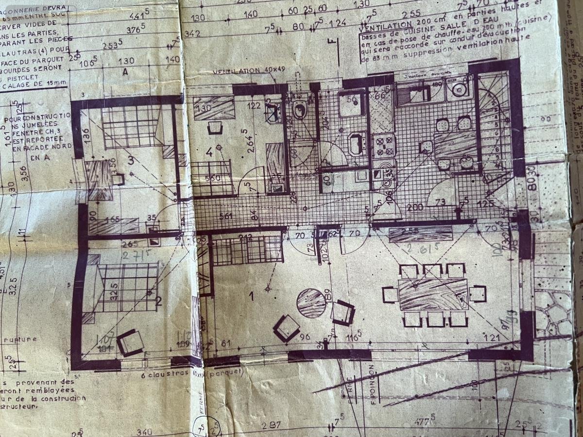 - A l'étage : véranda, entrée, cuisine aménagée, salon - salle à manger, dégagement, salle d'eau, water-closet, trois chambres dont une avec placard.