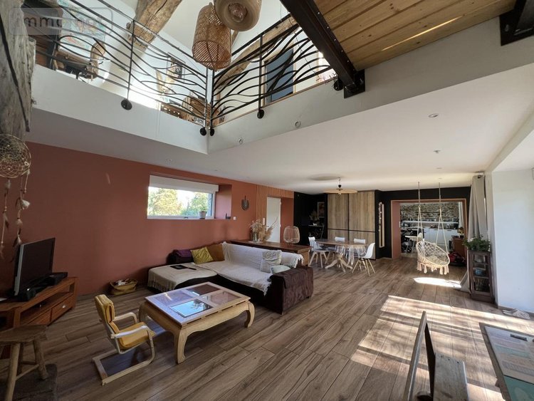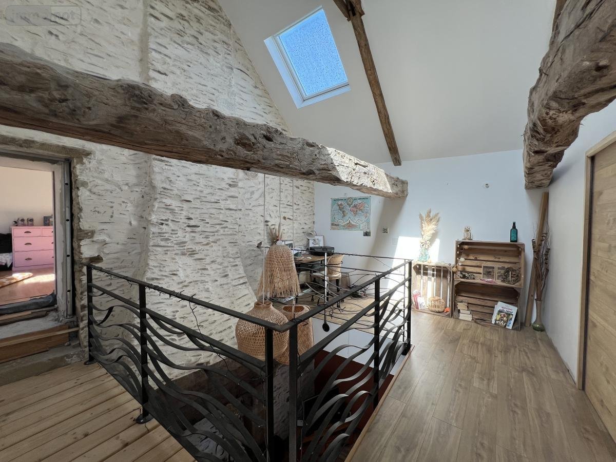- À l'étage au-dessus de la cuisine : mezzanine en cours d'aménagement (accessible par échelle), espace qui pourra être la future suite parentale