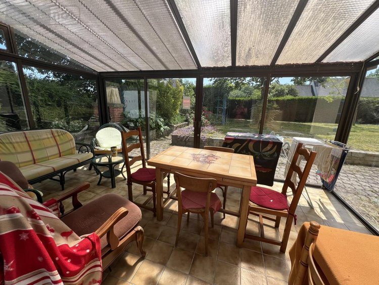 - au rez de chaussée : véranda, dégagement, cuisine aménagée, séjour avec cheminée-insert, buanderie, wc