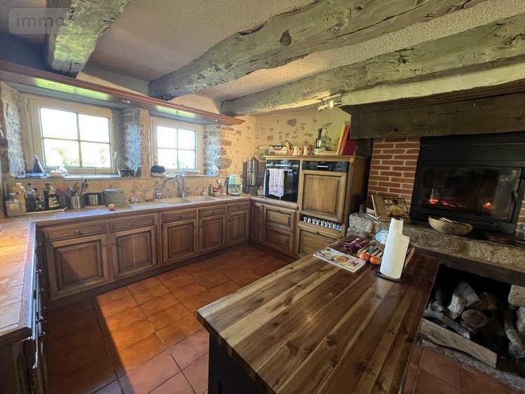 - Au rez-de-chaussée : entrée, cuisine aménagée et équipée avec cheminée insert donnant sur une véranda, un salon avec cheminée insert, buanderie avec water-closet, une chambre avec salle d'eau et water-closet attenants.