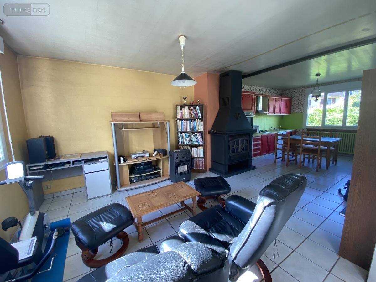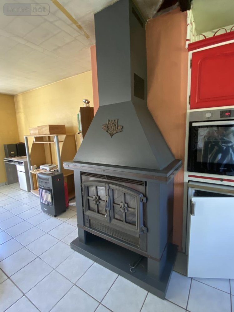 Une entrée, une cuisine aménagée et équipée ( four, hotte, lave vaisselle, hotte) ouvert sur le séjour bénéficiant d'un poêle à bois, un salon, salle d'eau toilettes.