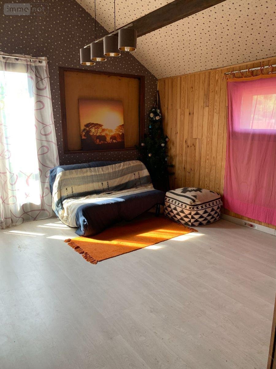 Cette maison atypique des années 1970 se compose d'une entrée, un séjour traversant lumineux, une cuisine équipée indépendante et d'un cellier.