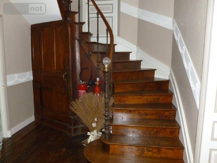Au 1er étage (90 m² au total à ce niveau) : un palier de 8,64 m² (avec pièce à usage de rangement de 1,57 m²) desservant quatre pièces de 16 m², 21.76 m² (avec cheminée et pièce noire à usage de rangement de 2.24 m²), 14,61 m² (avec cheminée et pièce à usage de rangement avec arrivée d'eau de 2,77 m²), 16,91 m² (avec cheminée), 7,28 m². Au 2ème et dernier étage (43 m²) : un palier de 3,26 m², avec un dégagement de 3,26 m² desservant une cuisine aménagée de 13,18 m², deux pièces de 14,66 m² et 13,18 m² (avec arrivée d'eau). Grenier (environ 30 m²). Cave en sous-sol avec une pièce à usage de chaufferie de 14,73 m² sur chape, une pièce de 20,49 m² sur chape, deux pièces sur terre battue de 20, 60 m² et 27,38 m². Chauffage central (pompe à chaleur, fuel possible). Cumulus électriques pour la production d'eau chaude à chaque niveau. Murs extérieurs doublés, isolation en toiture récente. Cheminées en marbre dans presque toutes les pièces. Electricité récente. Menuiseries PVC double vitrage, volets bois essentiellement et un volet roulant manuel en PVC. Plancher à tous les niveaux. Tout-à-l'égoût. Parc arboré tout autour avec mur d'enceinte. Dépendance en pierre avec garage pour une voiture, bûcher et ancienne verrière. Potager avec petite dépendance en pierre avec puits.