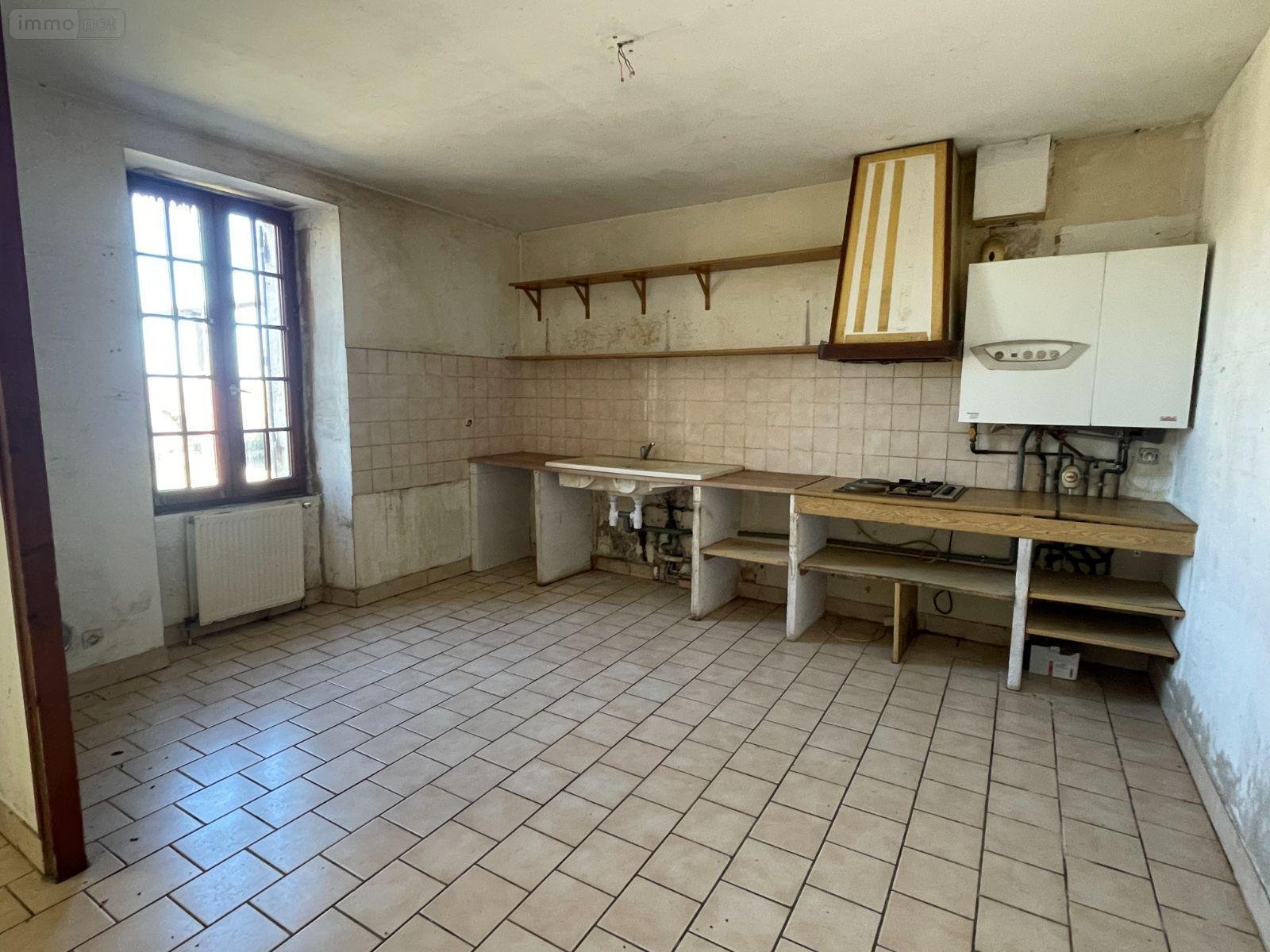 ALLEMANS, Maison ancienne à restaurer - Sur un terrain de 2230 m², maison ancienne, en pierre, individuelle, de 110 m² habitables environ sur deux niveaux. Comprenant une entrée sur séjour de 28 m² sur carrelage avec cheminée, une cuisine ouverte de 14 m² sur carrelage, un dégagement desservant 2 chambres de 9.60 et 10,67 m² sur moquette et sur lino, une salle de bains (baignoire, une vasque sur meuble bas, évacuation mahcine à laver, un wc indépendant. Dans les combles, un palier desservant 2 chambres de 12.49 et 19.23 m² sur lino et sur moquette, un grenier (23 m²). Assainissement individuel. Chauffage central gaz (cuve extérieure), y compris la production d'eau chaude. Chauffage électrique à l'étage. Menuiseries bois sur-vitrage, volets bois. Des anciens toits à cochons à l'avant de la maison. Un hangar ouvert, charpente métallique et couverture en fibro-ciment, de 100 m² au sol environ. Puits. - Classe énergie : ? - Prix Hon. Négo Inclus : 80 000,00 ? dont 0,00% Hon. Négo TTC charge acq. Prix Hors Hon. Négo :0,00 ? - Réf : 077/1136