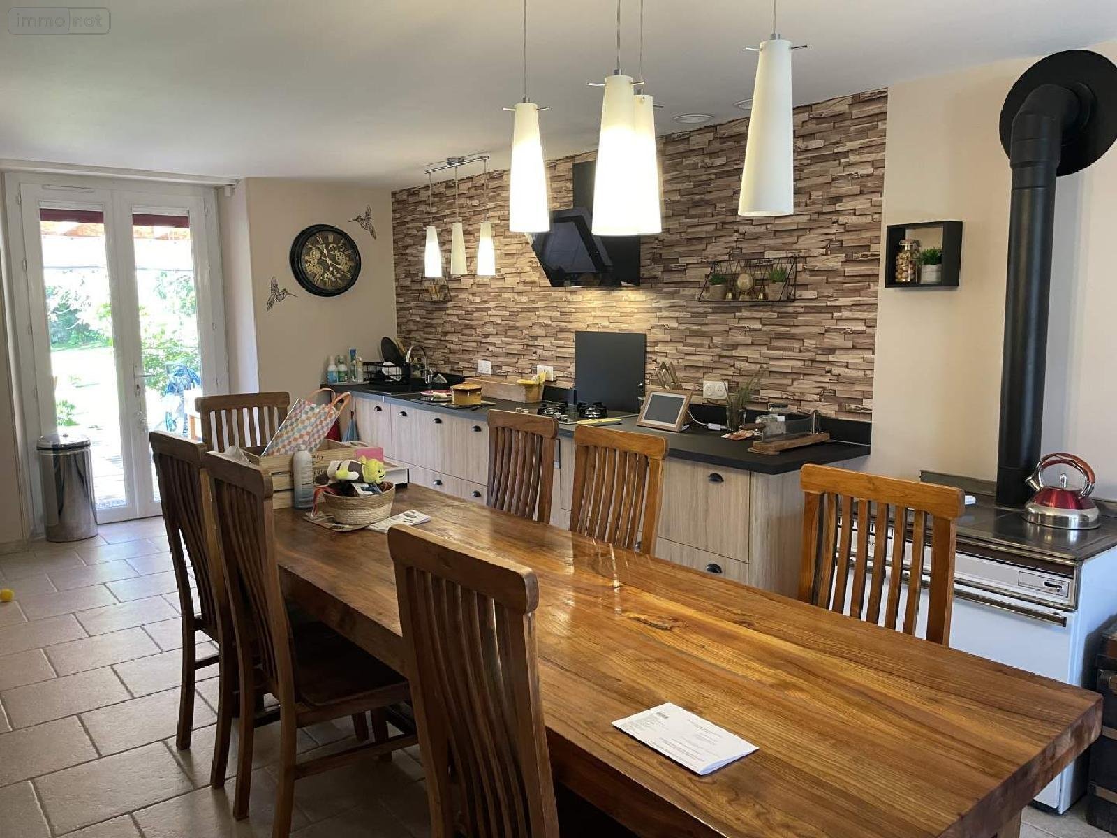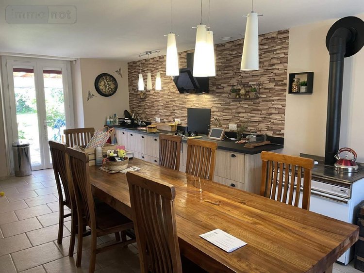 RIBERAC- Dans un hameau à la campagne au calme, sur un terrain clos et arboré de 1 463 m², maison ancienne en pierre, de 121 m² habitables environ, sur deux niveaux à vendre à Ribérac en Dordogne (24). Comprenant en rdc, une entrée desservant un salon de 25.85 m² sur carrelage avec poêle à bois, une cuisine aménagée (placards bas) de 26.60 m² sur carrelage avec cuisinière à bois, un wc sous l'escalier. A l'étage, un palier desservant 4 chambres de 13 m² chacune environ, sur plancher, une salle d'eau/wc de 4.29 m² sur carrelage (douche à l'italienne, une vasque sur meuble bas, un wc sani-broyeur, VMC). Ancien garage accolé à la maison de 28 m² sur chape, isolé, à usage de stockage, avec un grenier au-dessus aménageable. Climatisation réversible et un convecteur électrique (dans la salle d'eau). Cumulus électrique pour la production d'eau chaude. Menuiseries PVC double vitrage, volets roulants PVC électriques (commande centralisée). Tout-à-l'égoût (avec pompe de relevage). Terrasse à l'arrière sur pilotis, de 60 m² environ, en bois, couverture en polycarbonate, et stores amovibles. En enfilade, un abri de 8.22 m². Jardin avec jolie vue. Petite terrasse couverte et carrelée de 18 m² à l'avant de la maison. Un abri de jardin en bois sur chape. Une dépendance en pierre, mitoyenne sur deux côtés, divisée en 2 pièces de 15.61 et 19.38 m² sur chape. Grenier au-dessus aménageable. L'ensemble des couvertures est neuf (refaites après le sinistre de juin 2022). Isolation (laine de roche soufflée) au-dessus des pièces de vie et doublage des murs extérieurs. Puits.