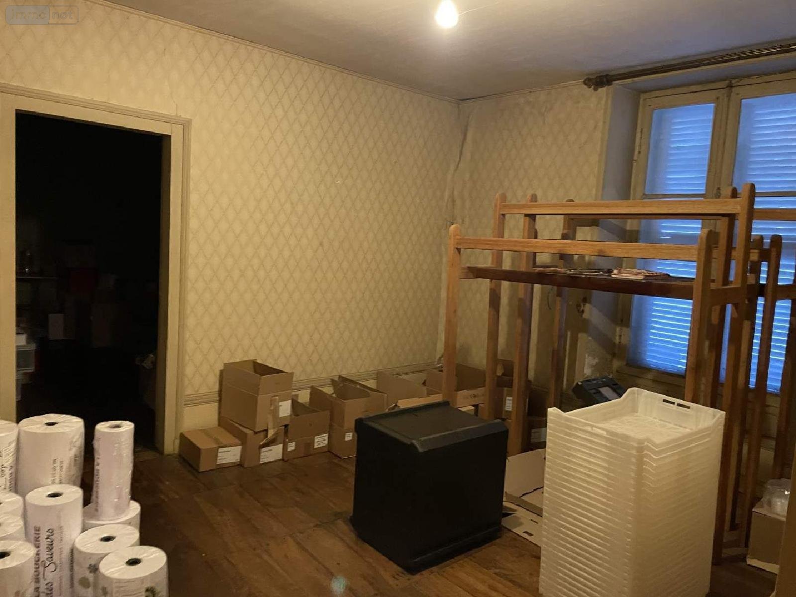 La partie louée à un artisan boucher (bail commercial du 15/09/2017 valable jusqu'au 14/09/2026), sur la base de 987.11 euros TTC/mois. Comprenant : en rdc, une surface de vente de 42.48 m² avec vitrines sur la rue principale, à l'arrière deux frigos, un local chaufferie, et accessible depuis une cour deux pièces à usage de laboratoire traiteur et stockage de 14.32 m² et 16,60 m², et une autre pièce indépendante à usage également de laboratoire de 10.64 m². Au 1er étage : 3 pièces bureau/stockage de 11.17, 16.73 et 21.24 m², une salle d'eau/wc. Au 2ème et dernier étage : 3 pièces et des combles.