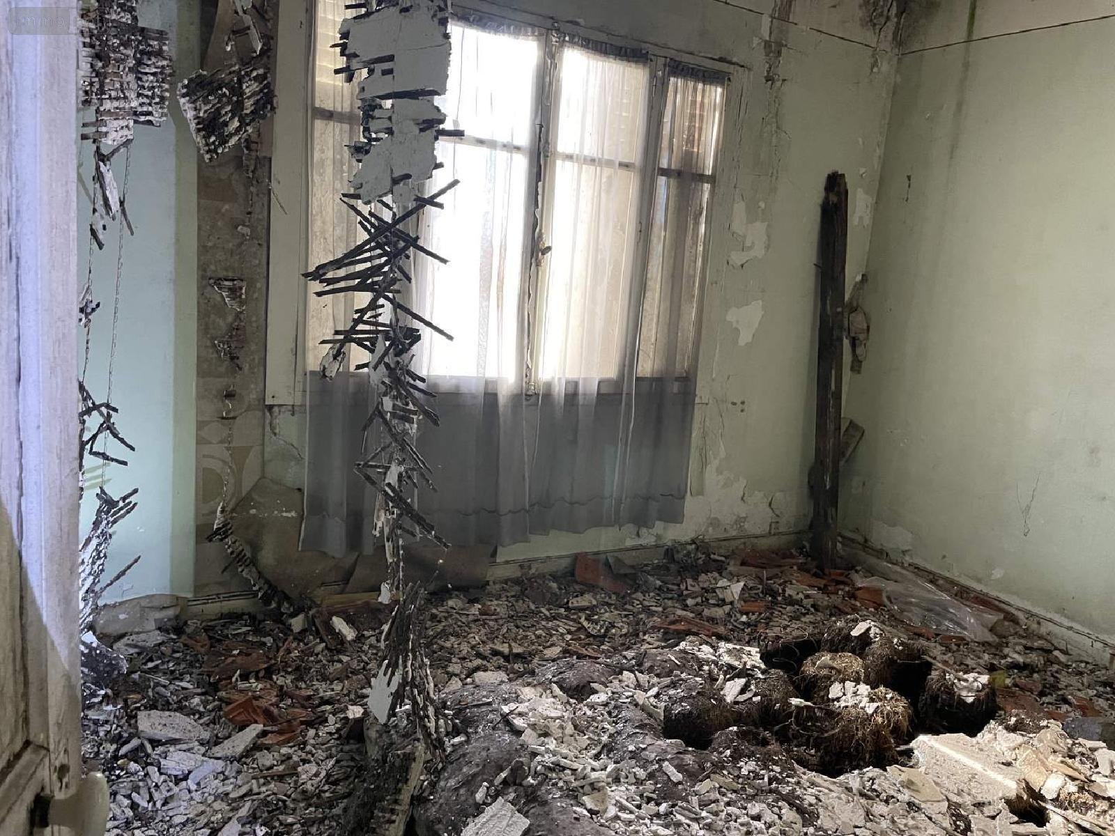 La maison principale, ancienne, en pierre, édifiée sur cave, de 149 m² habitables environ, sur deux niveaux, entièrement vétuste et saccagée, à rénover entièrement. Comprenant, accessible après deux marches, une entrée sur dégagement desservant trois pièces de vie de 19.87 m², 24.57 m² et 12.61 m² sur plancher, une cuisine de 7.78 m² sur plancher, un wc sous l'escalier. A l'étage, un dégagement desservant 4 chambres de 7.94, 16.16, 18.56 et 14.26 m² sur plancher, une salle de bains de 8.31 m². Combles au-dessus avec 2 anciennes chambres de bonne. Cave en sous-sol accessible par l'extérieur. Tout-à-l'égoût (à contrôler). Pas de chauffage central. Menuiseries bois simple vitrage, volets bois.